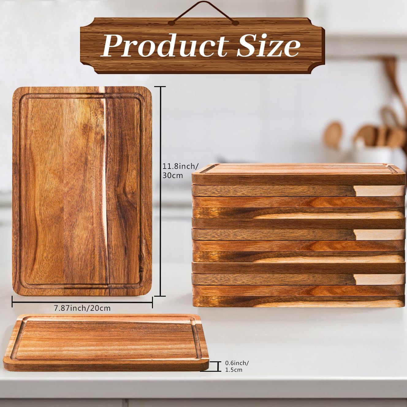 12 Pack Acacia Wood Cutting Boards Bulk, Wood Serving Tray for Food Appetizer, Rectangular Wooden Serving Platter, Wood Charcuterie Board for Vegetable, Cheese, Fruit(12″x8″ inch)