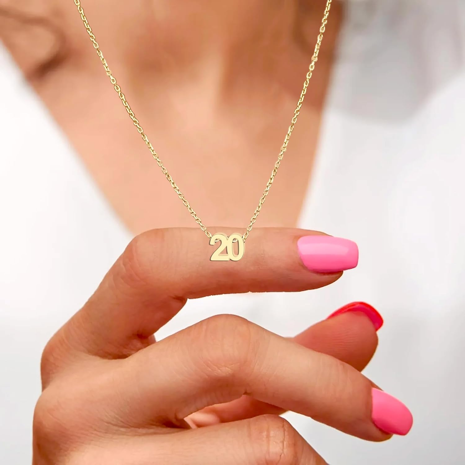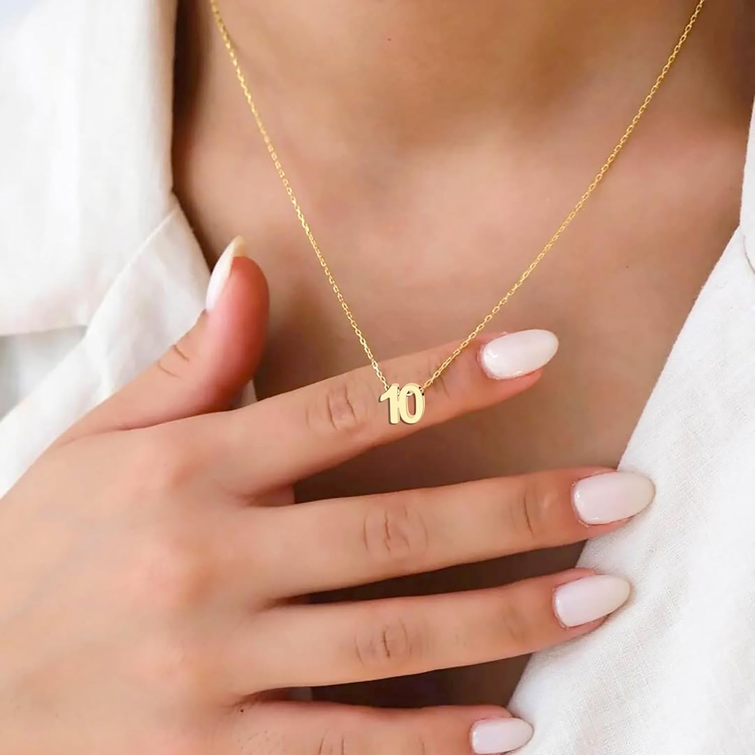 18K Gold Plated Number Necklace for Women,Lucky Number Necklace Personalized Jewelry Birthday Gift