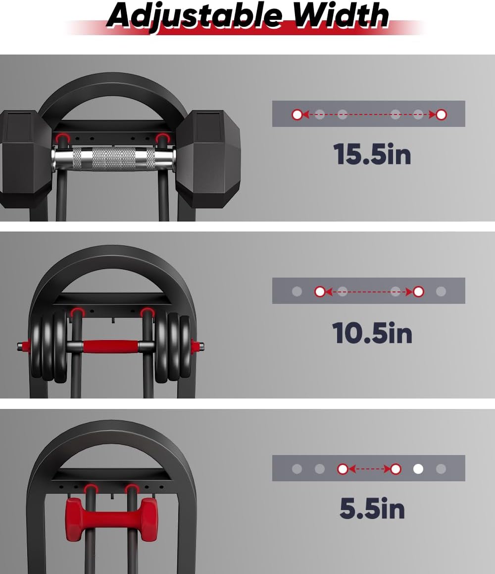 Adjustable Width: 3 kind width to customize the spacing to fit various dumbbell sizes.