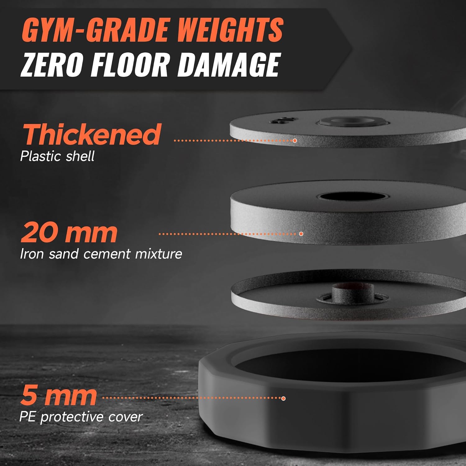 [Precision Weight System] Modular 2.75lb & 5lb weight plates allow 25lb (8×2.75lb), 45lb (8×2.75lb + 4×5lb), and 65lb (8×2.75lb + 8×5lb) configurations, converting seamlessly into dumbbells, kettlebells, barbells, push-up stands & plate-loaded bars.