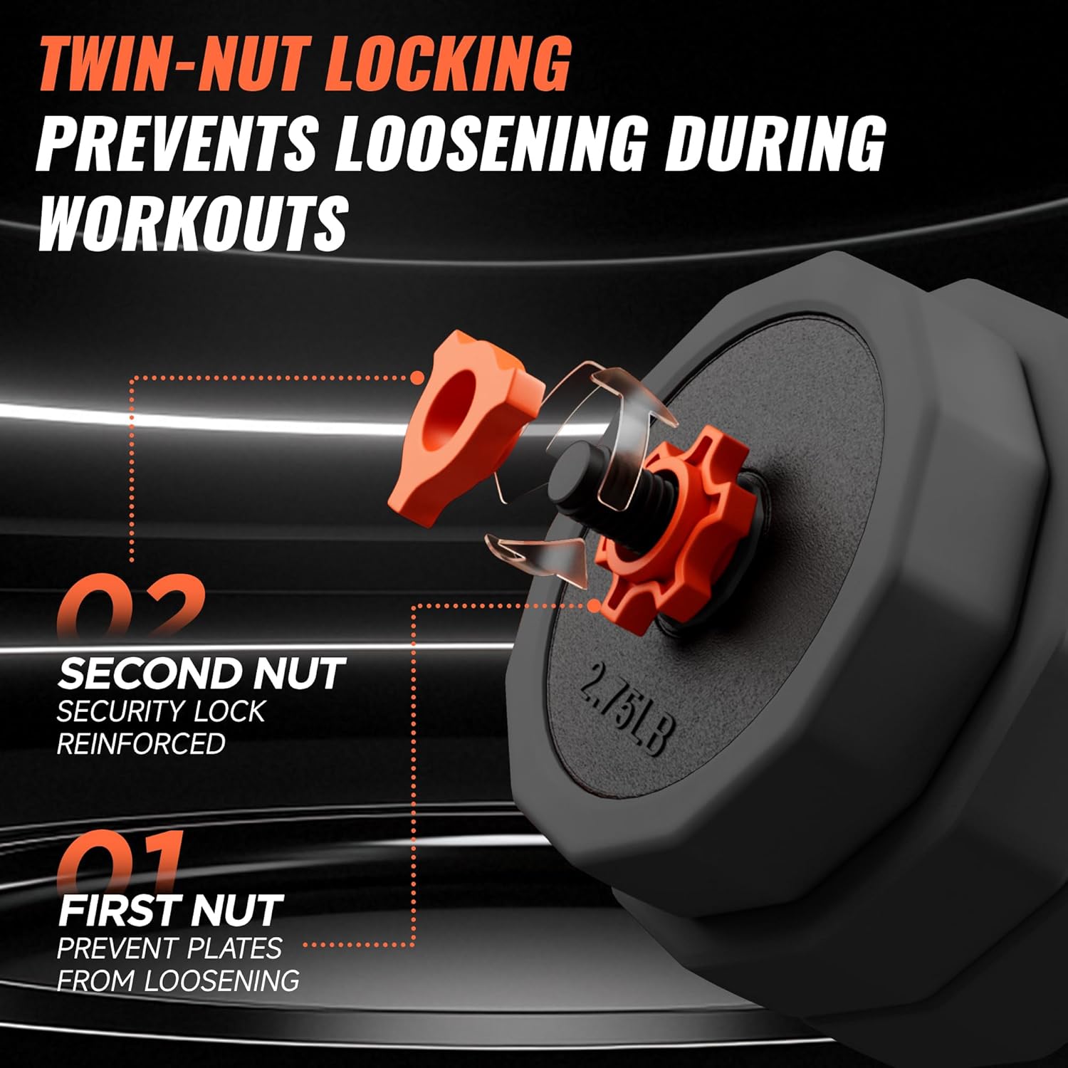 [Dual-Nut Security] Two industrial-grade nuts per side ensure zero weight plate loosening during deadlifts, kettlebell snatches, or explosive HIIT movements.
