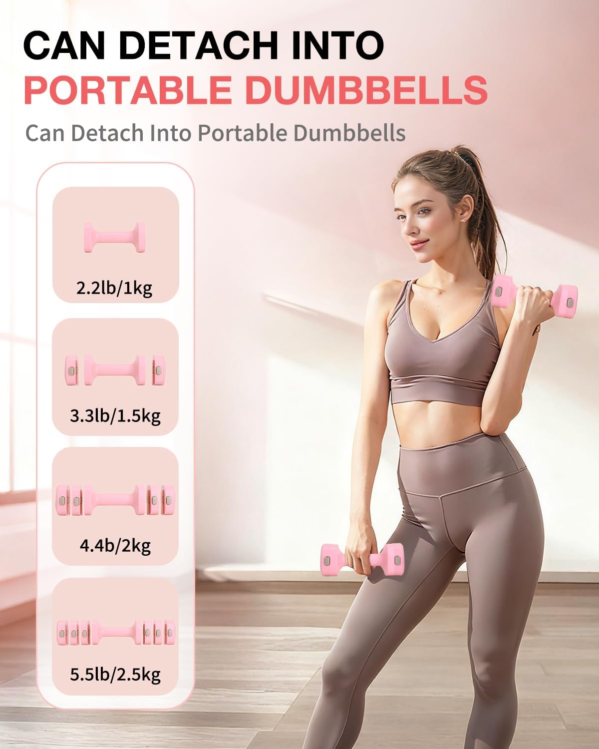 4-in-1 Adjustable Weights for All Levels: GOLDNITE adjustable kettlebell offers flexible weight options to match your fitness journey. Each dumbbell adjusts to 2.2lb, 3.3lb, 4.4lb, or 5.5lb. Combined with the 1.1lb kettlebell base, the total weight can be set from 5.5lb to 12.1lb, ideal for beginners and enthusiasts alike