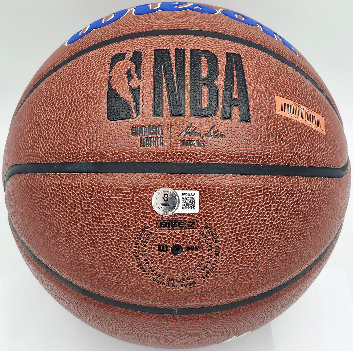 This is a Composite Leather Logo Basketball that has been hand signed by Allen Iverson. This item has been witnessed and certified authentic by Beckett Authentication (BAS) and comes with their tamper-proof witness hologram.