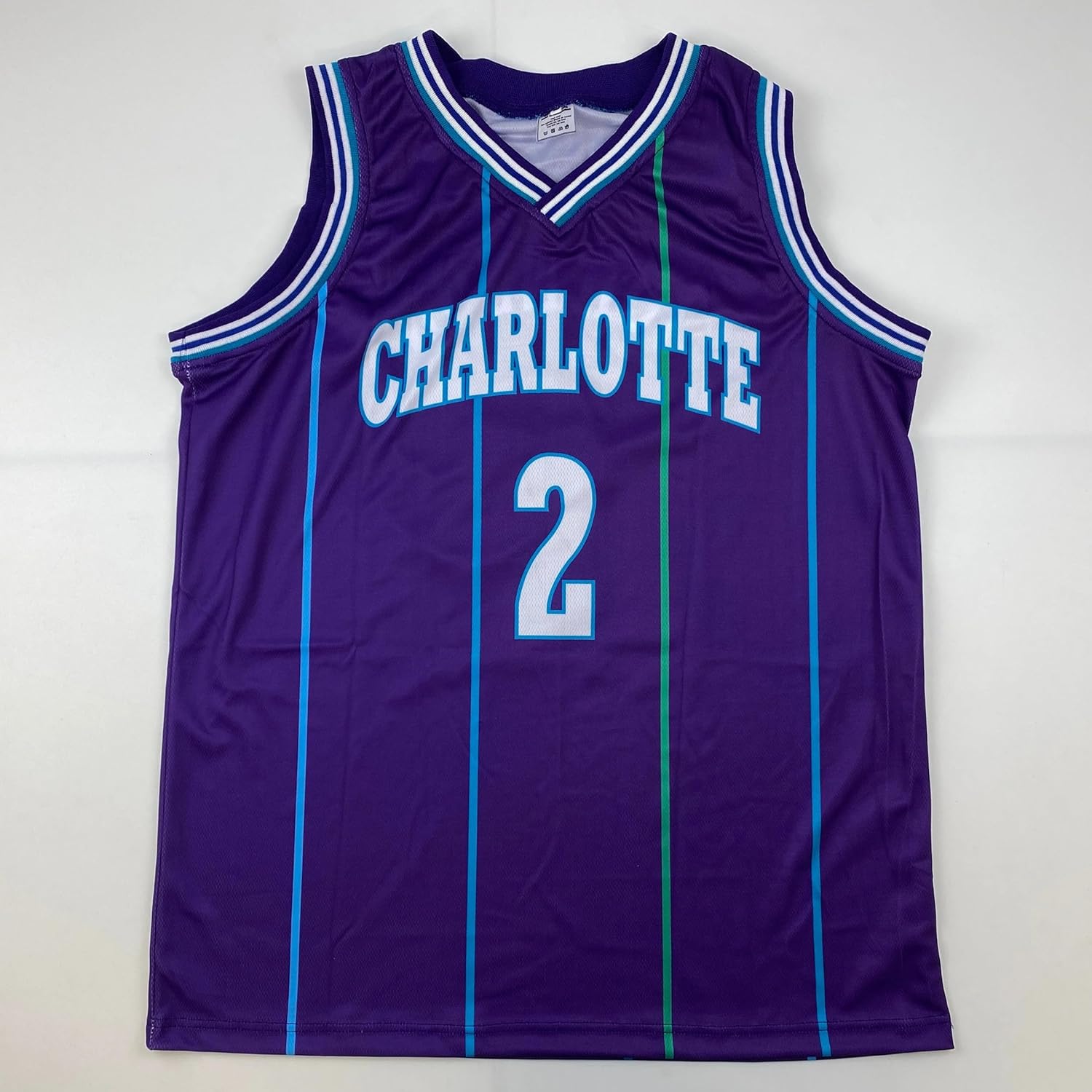 Autographed/Signed Larry Johnson Charlotte Purple Basketball Jersey JSA COA