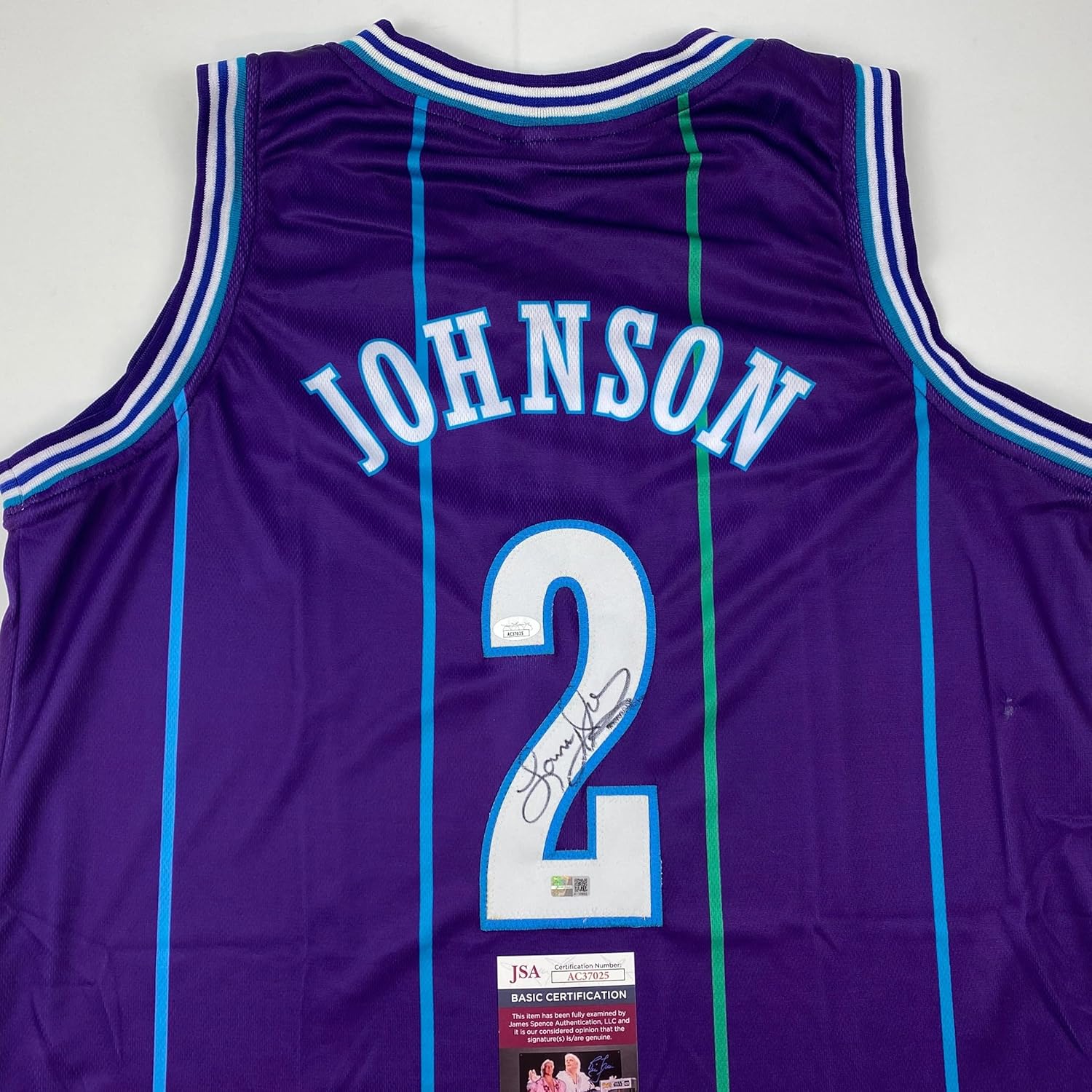 Autographed/Signed Larry Johnson Charlotte Purple Basketball Jersey JSA COA