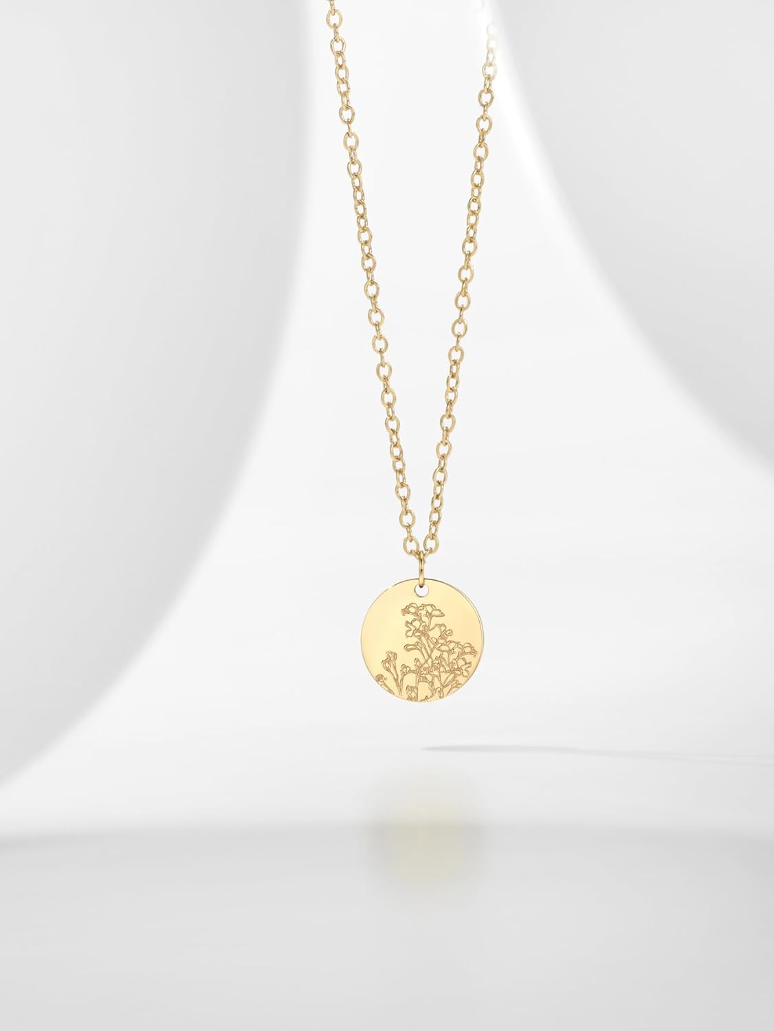 Birth Flower Necklace, 14K Gold Plated Floral Pendant Necklaces for Women, Simple Dainty Birth Month Flower Necklace, Birthday Jewelry for Women – 12 Month