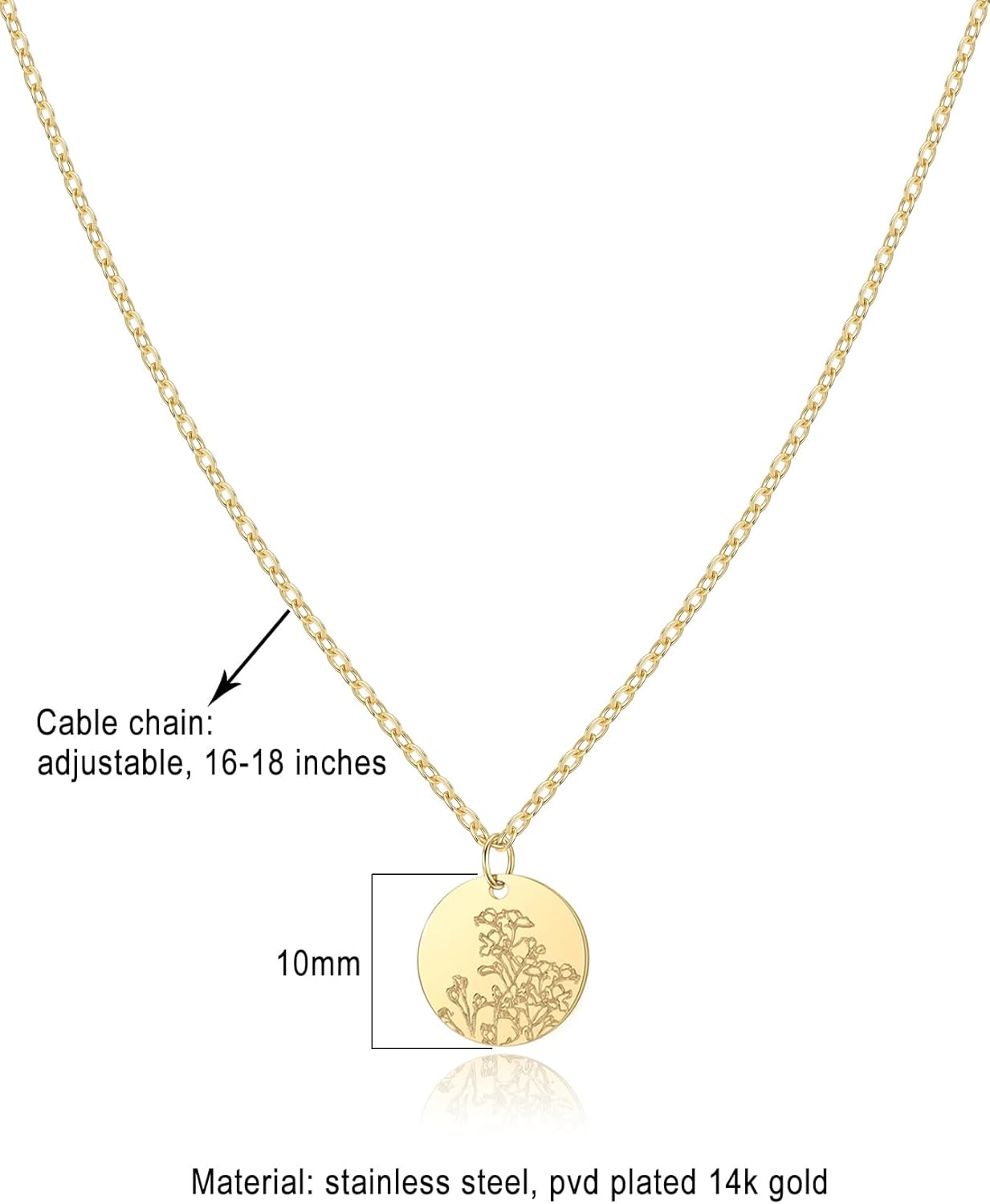 Birth Flower Necklace, 14K Gold Plated Floral Pendant Necklaces for Women, Simple Dainty Birth Month Flower Necklace, Birthday Jewelry for Women – 12 Month