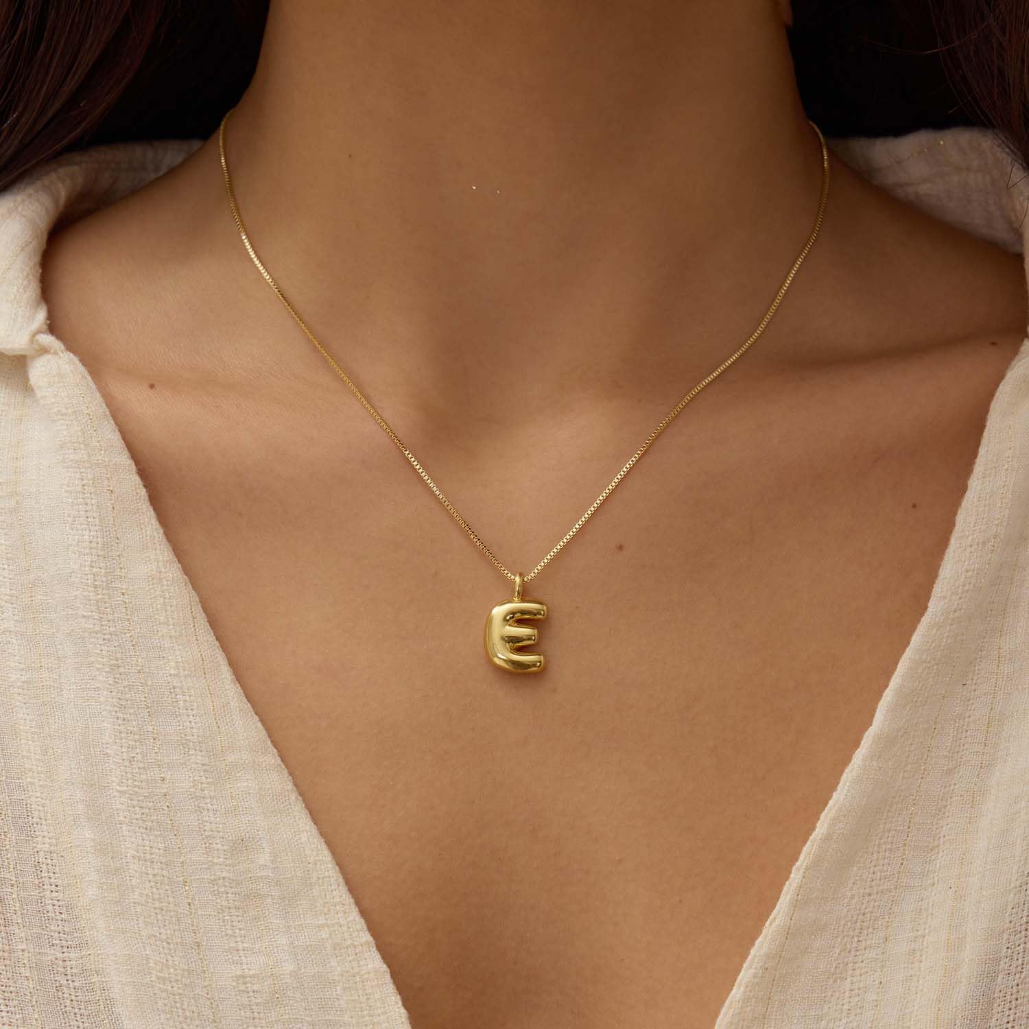 Bubble Gold Silver Letter Necklace Initial Necklaces for Women Trendy 14K Dainty Charm Pendant Name Necklace Personalized Jewelry Gift for Women Teen
