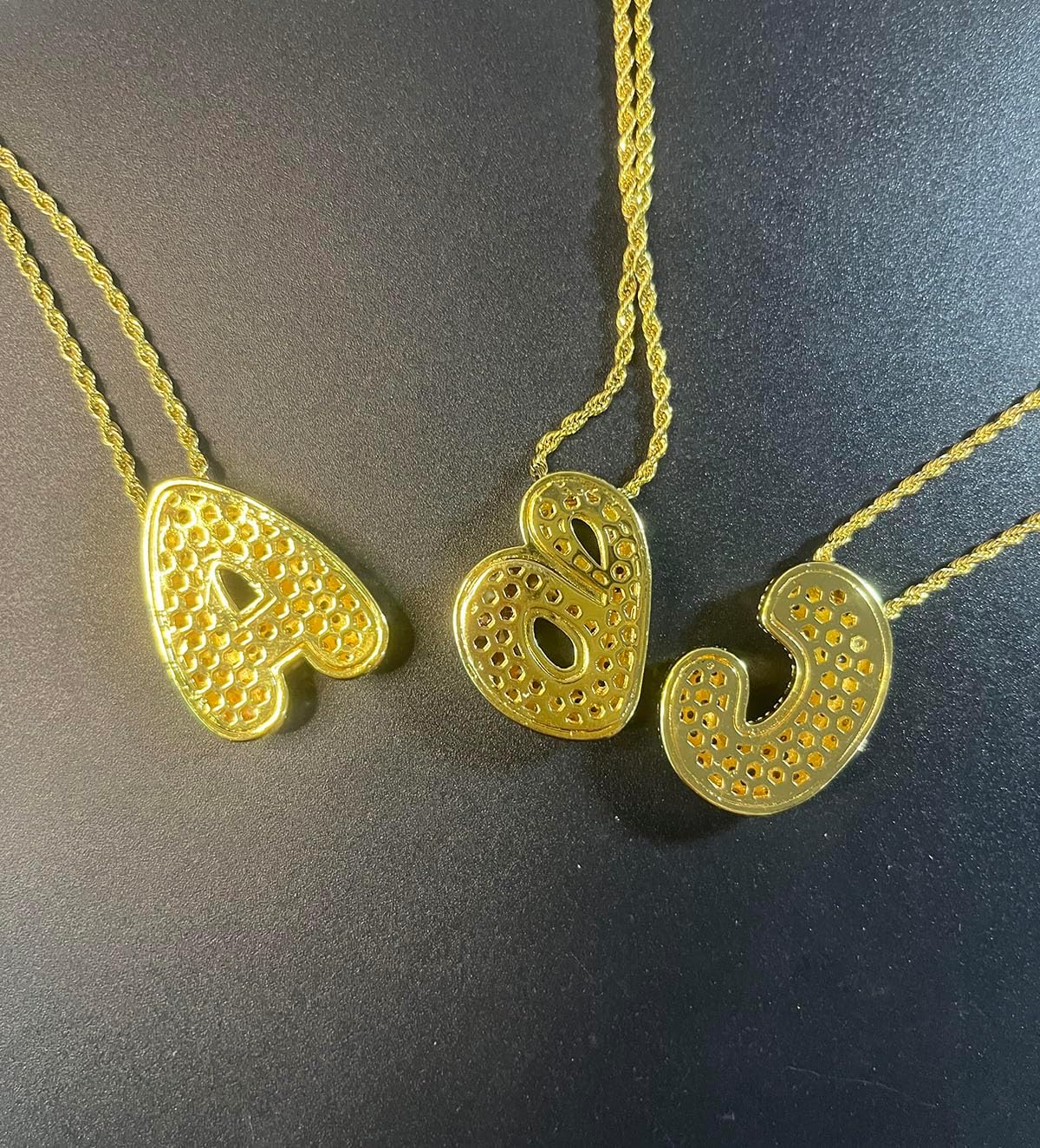 Personalize your look with our Dainty Iced Out Bubble Letter Necklace