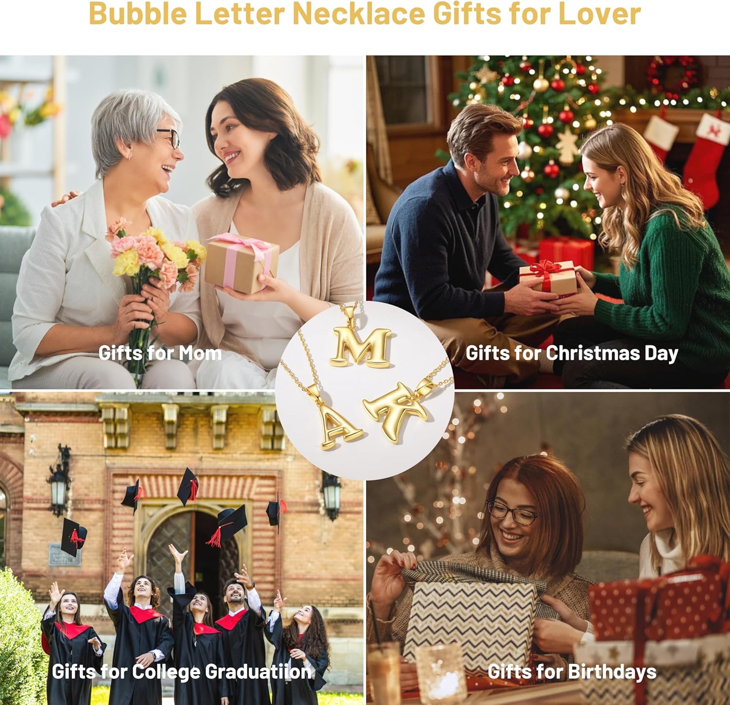 Gold Bubble Letter Necklace for Women