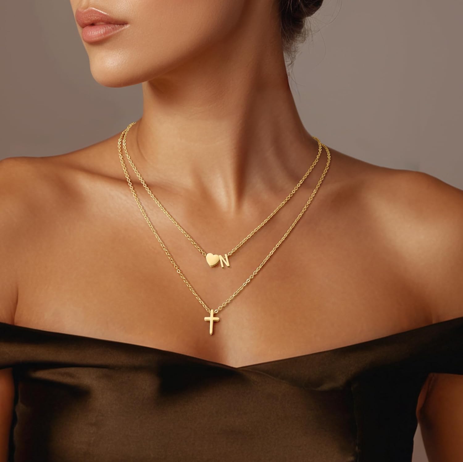 Cross Necklace, Layered Initial Necklaces for Women,Dainty 18K Real Gold Plated Heart Initial Necklace, Personalized Gifts for Women Teen Jewelry