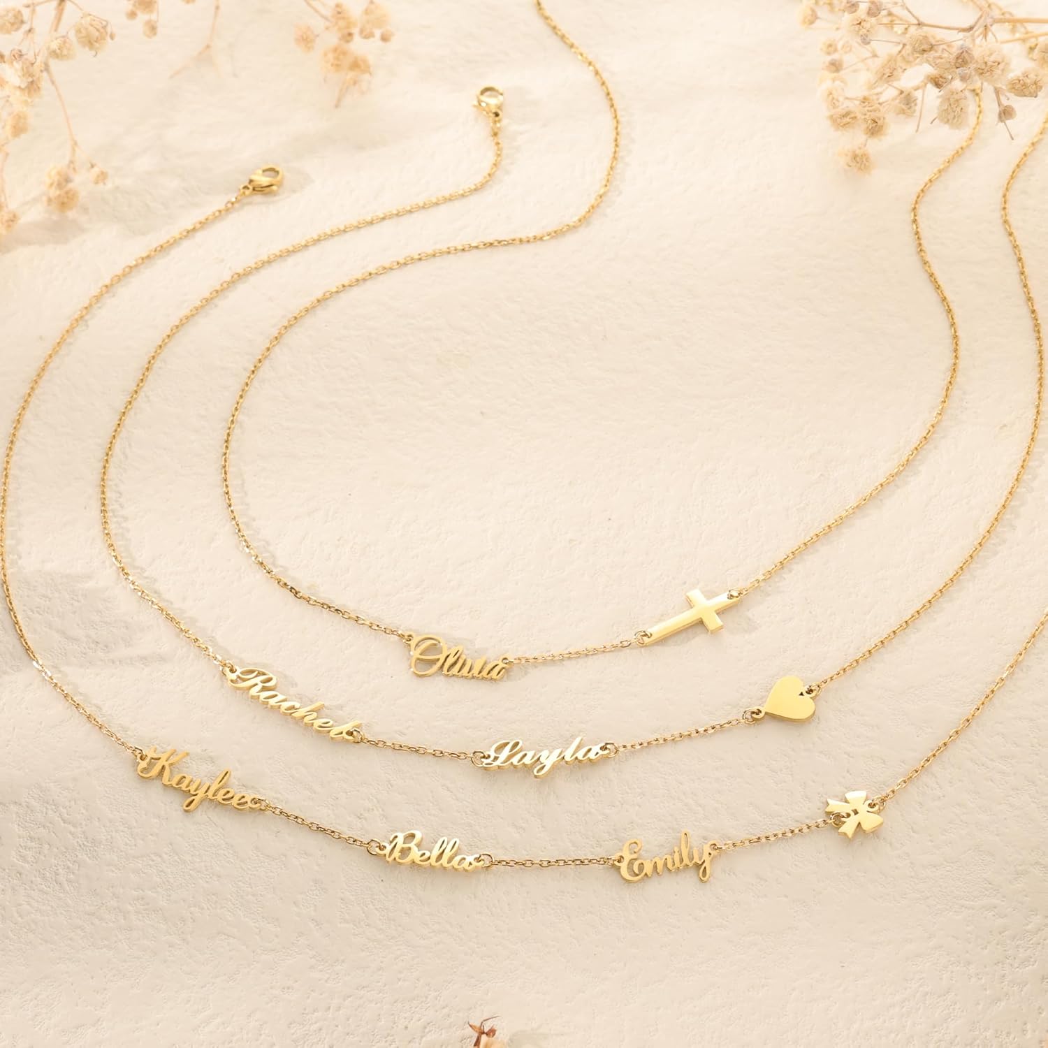 Customization Options: 1-3 tiny names+pendants (heart, cross, paw print,bow)