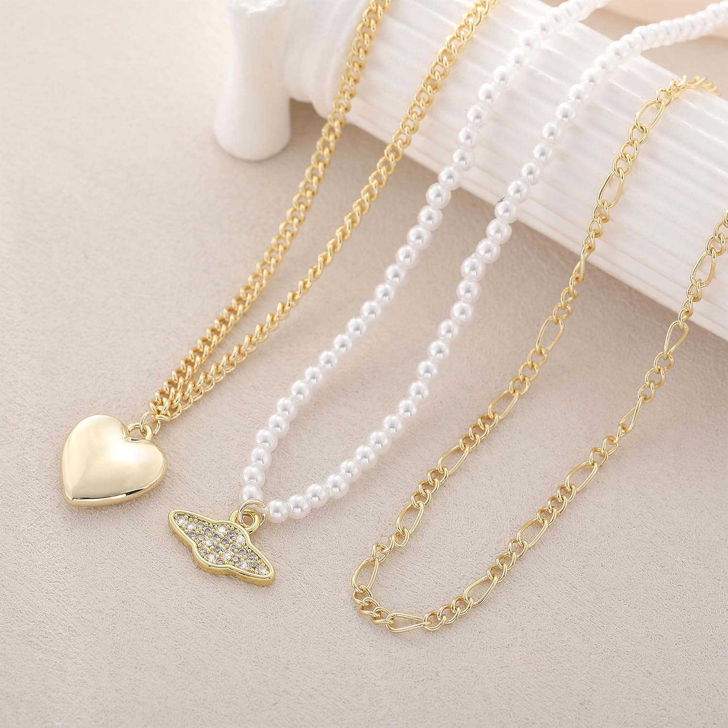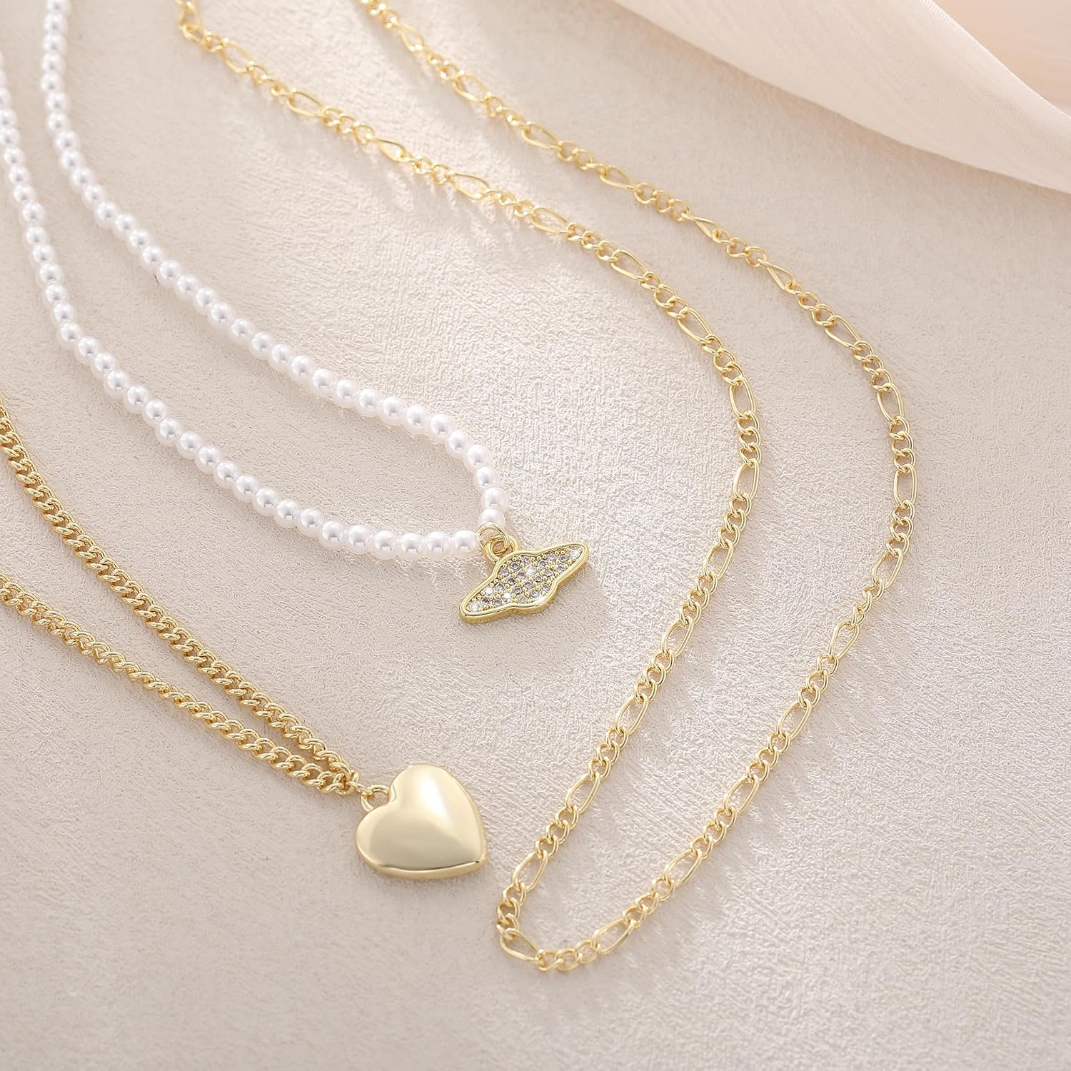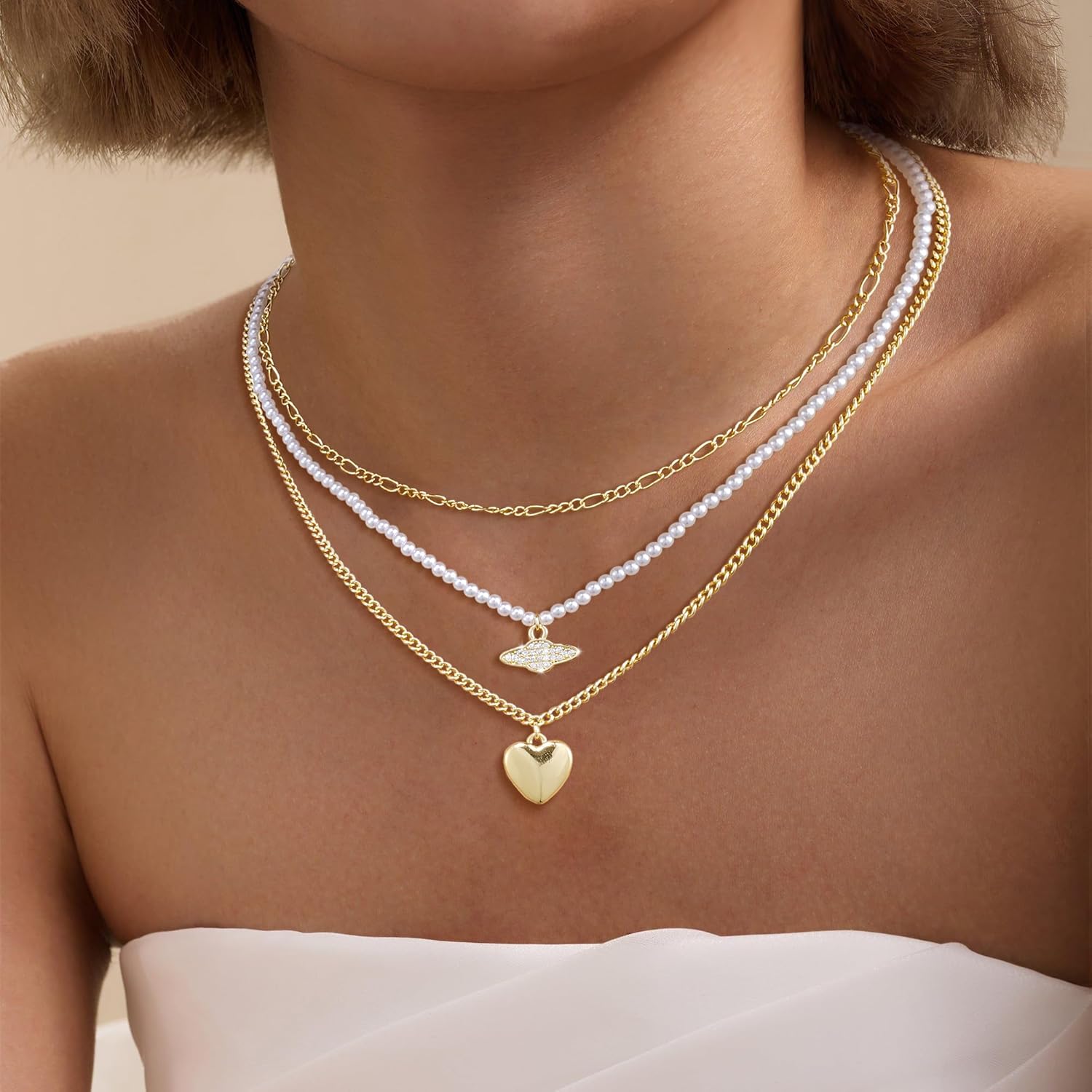 Gold Layered Necklaces for Women 14K Real Gold/Silver Plated Dainty Stackable Choker Chain Necklace Stack Layering Simple Trendy Fashion Pendant Necklaces Set Jewelry Gifts