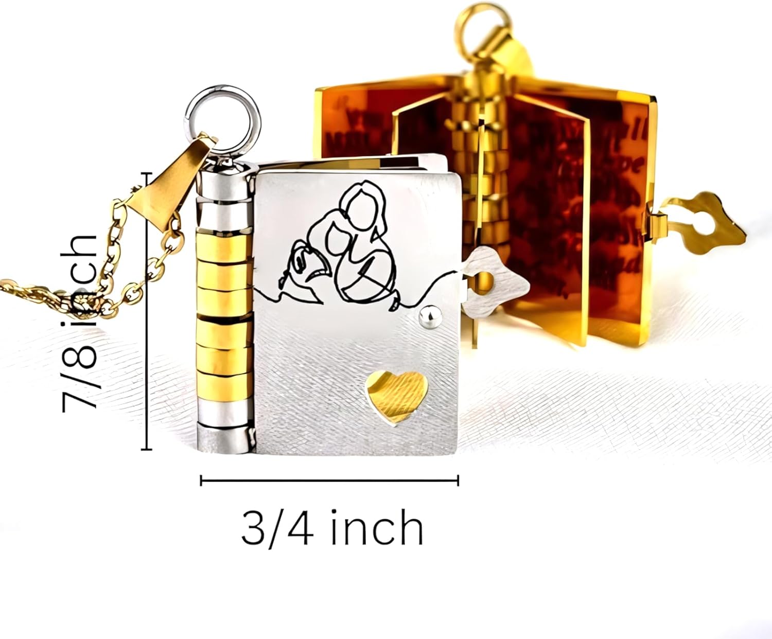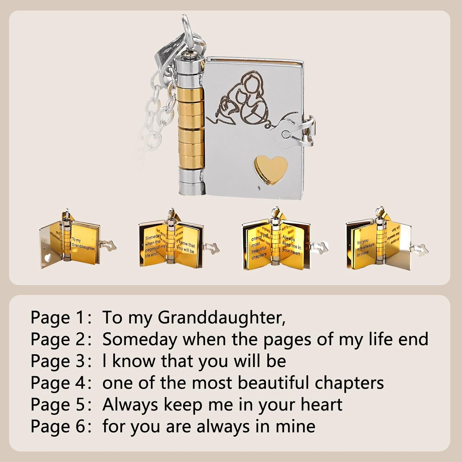 Granddaughter Book Necklace With 6 Pages Engraved Information,Granddaughter Gifts From Grandma