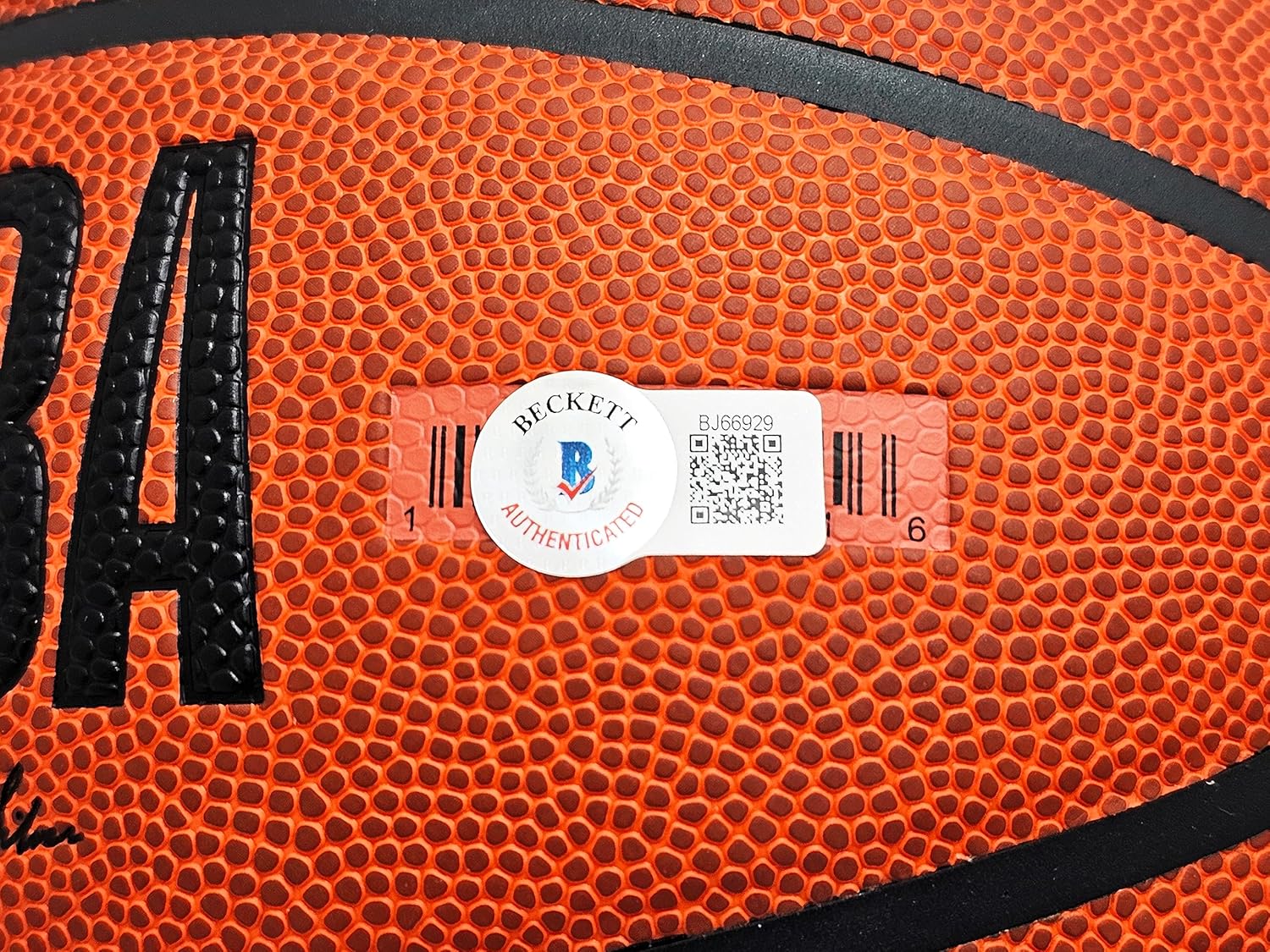 This is aComposite Leather Logo Basketball that has been hand signed by Ja Morant. This item has been certified authentic by Beckett Authentication (BAS) and comes with their tamper-proof QR Code hologram.