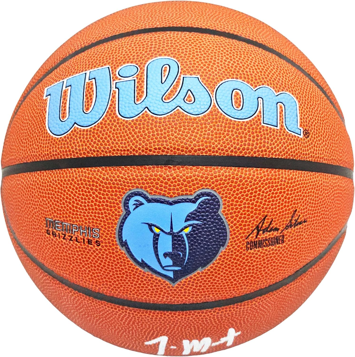 This is aComposite Leather Logo Basketball that has been hand signed by Ja Morant.