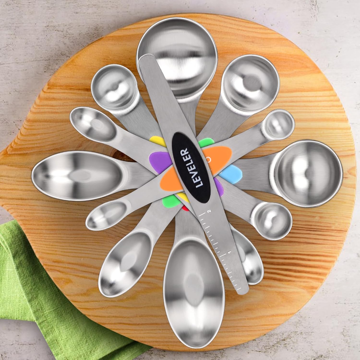 Magnetic Stainless Steel Measuring Spoons Set with Leveler