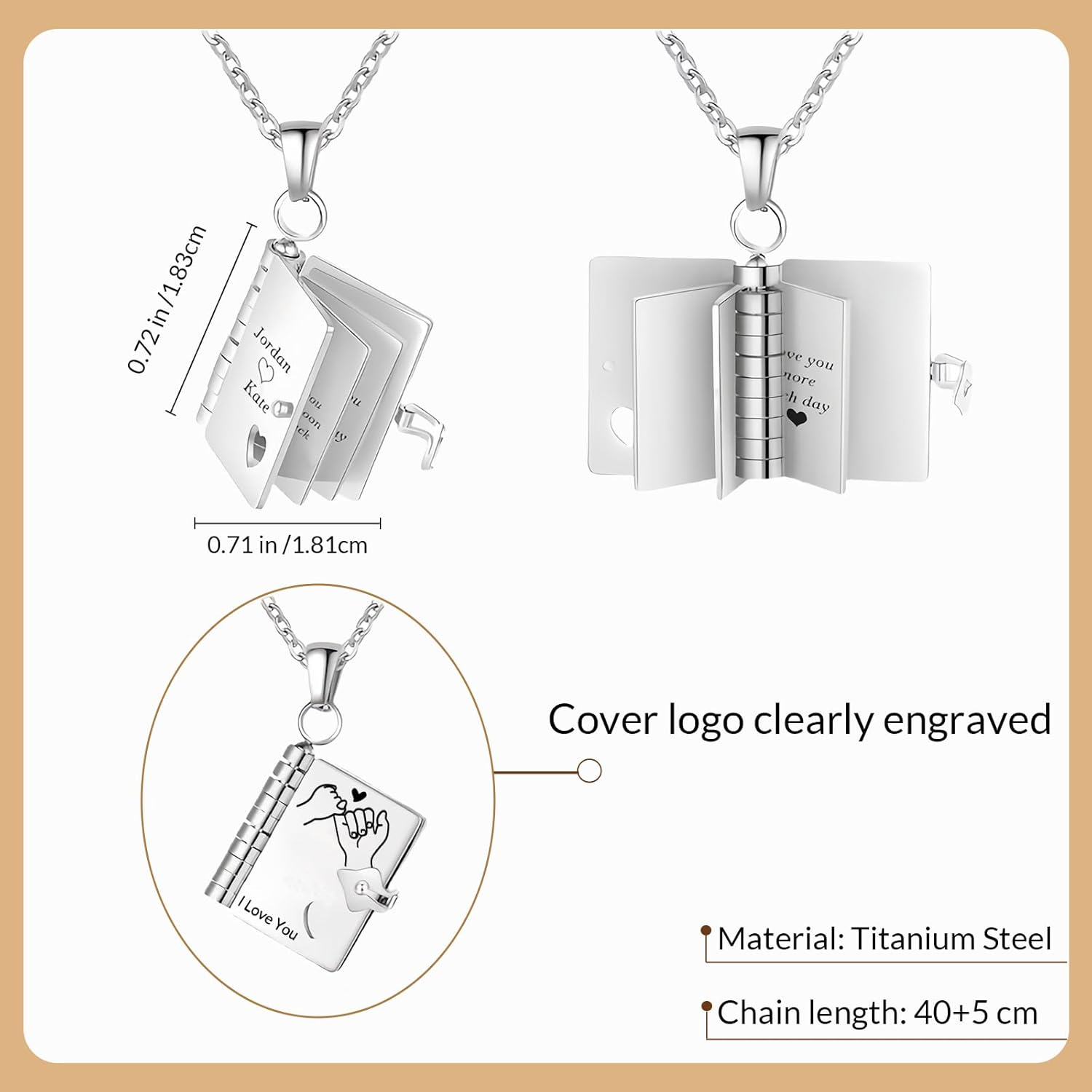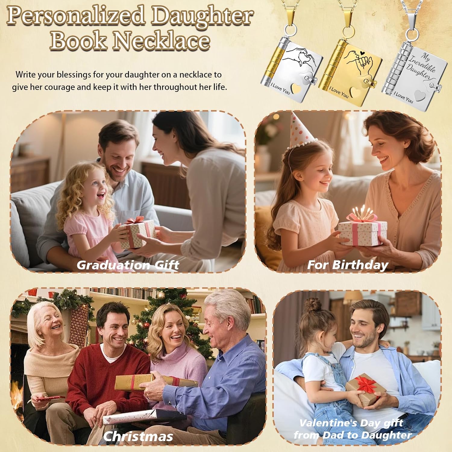 My Incredible Daughter Book Necklace for Daughter Gifts from Mom Dad, Necklaces for Women Openable with 6 Pages of Engraved Information Birthday Day Gift Graduation Jewelry for Love