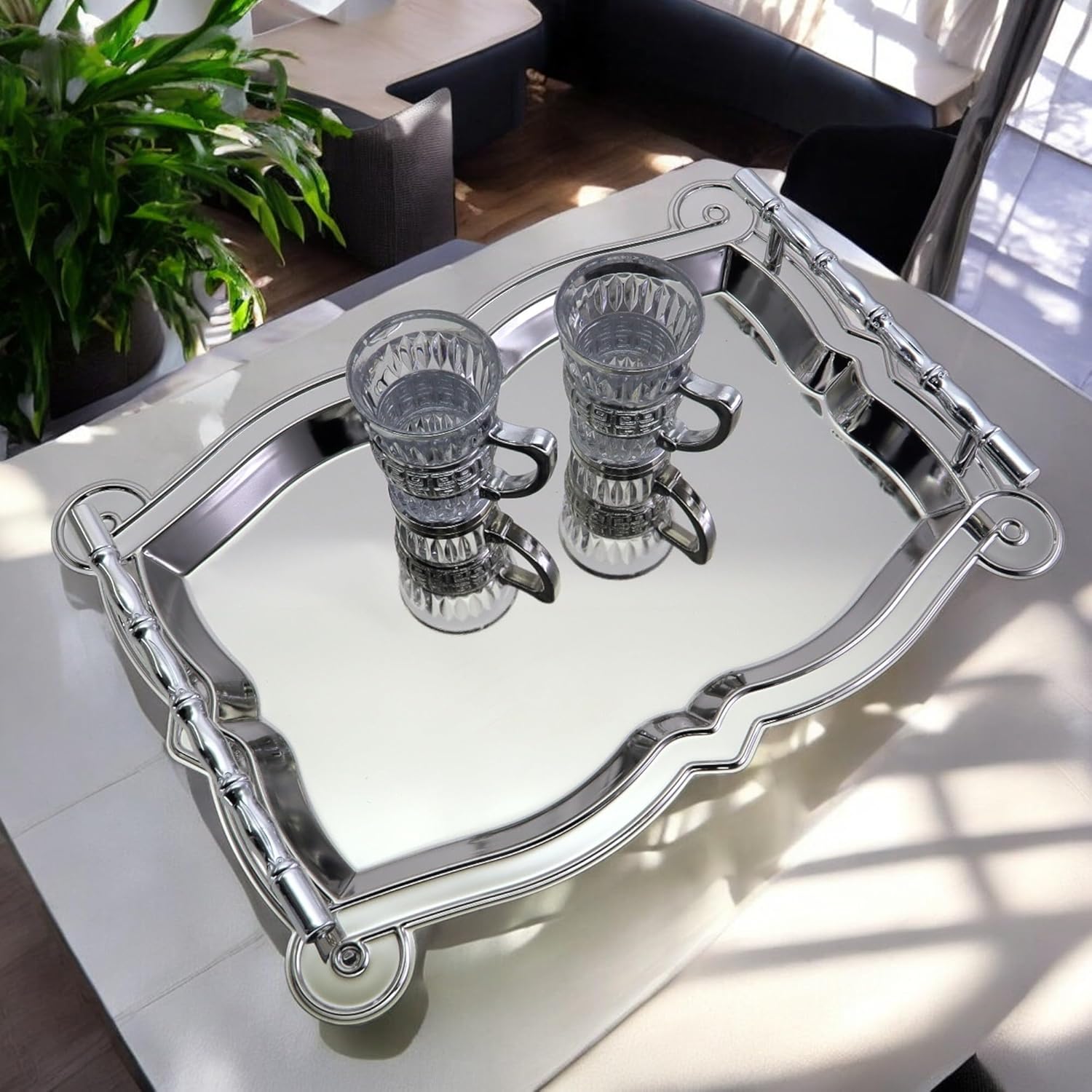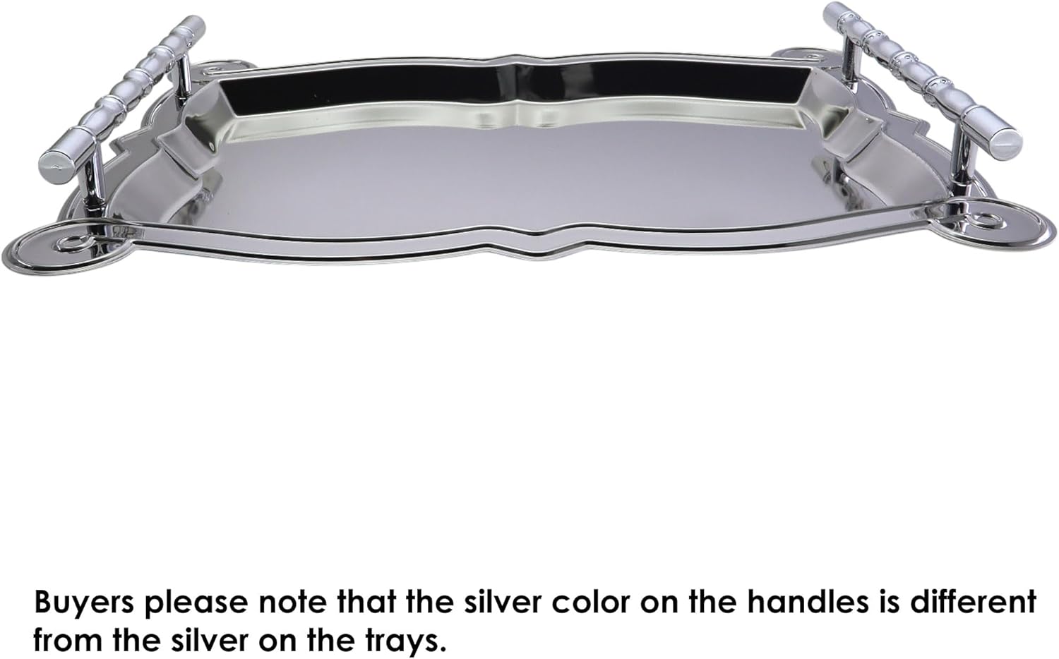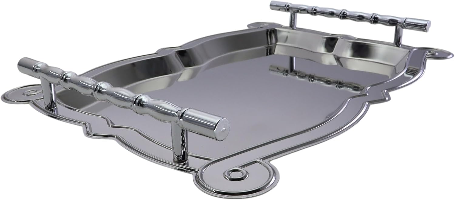 An effortlessly charming decorative piece at an affordable price. Featuring a chrome-plated, high-quality finish with a mirrored reflection, it’s perfect for the holidays or everyday use. This multi-purpose serving tray is ideal for buffet and catering services.
