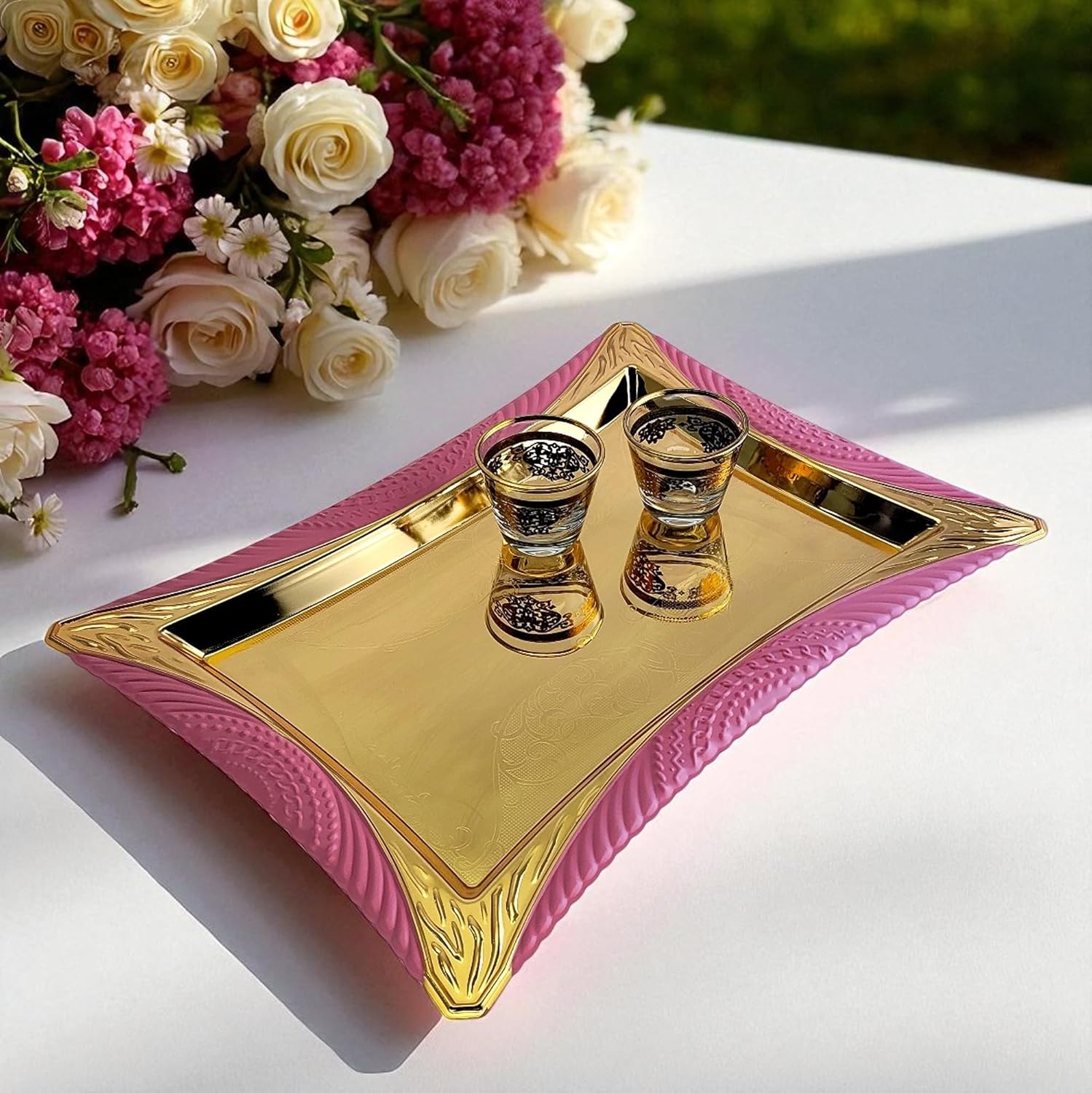 To maintain your gold-plated iron trays, please ensure no liquid is left on them after use. Be sure to dry them completely to avoid rust.