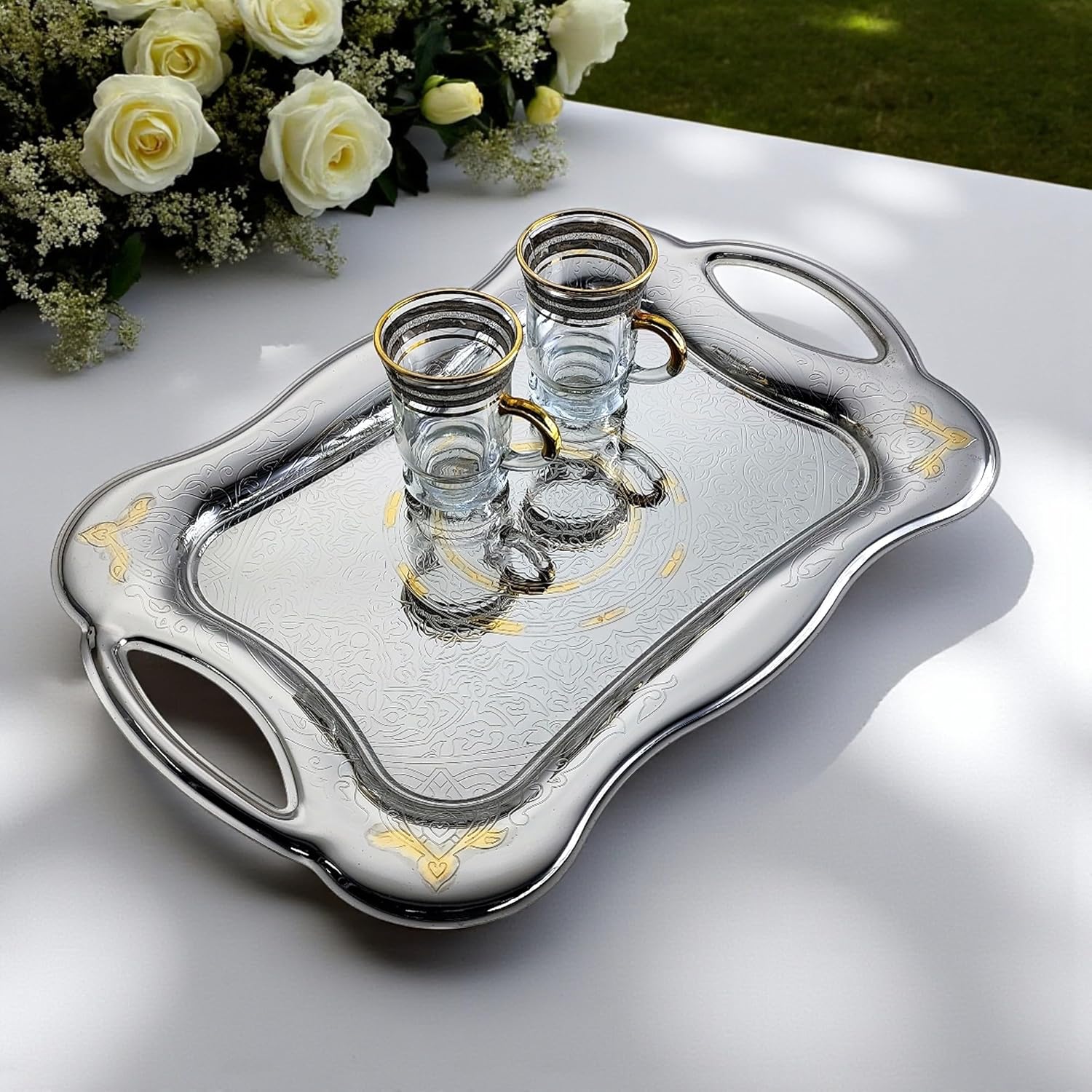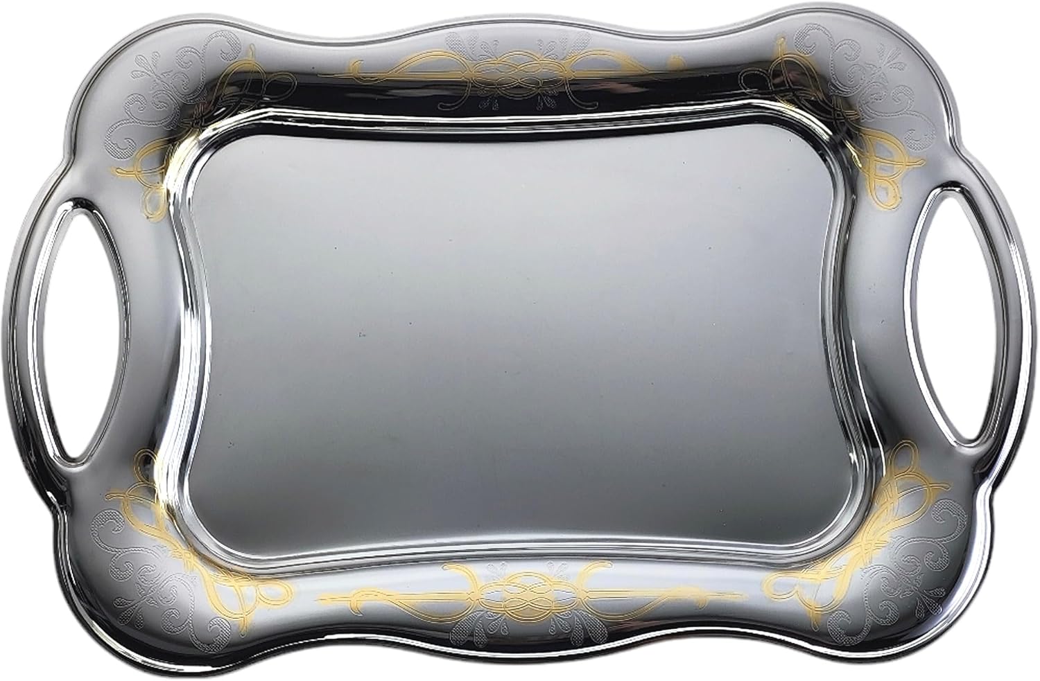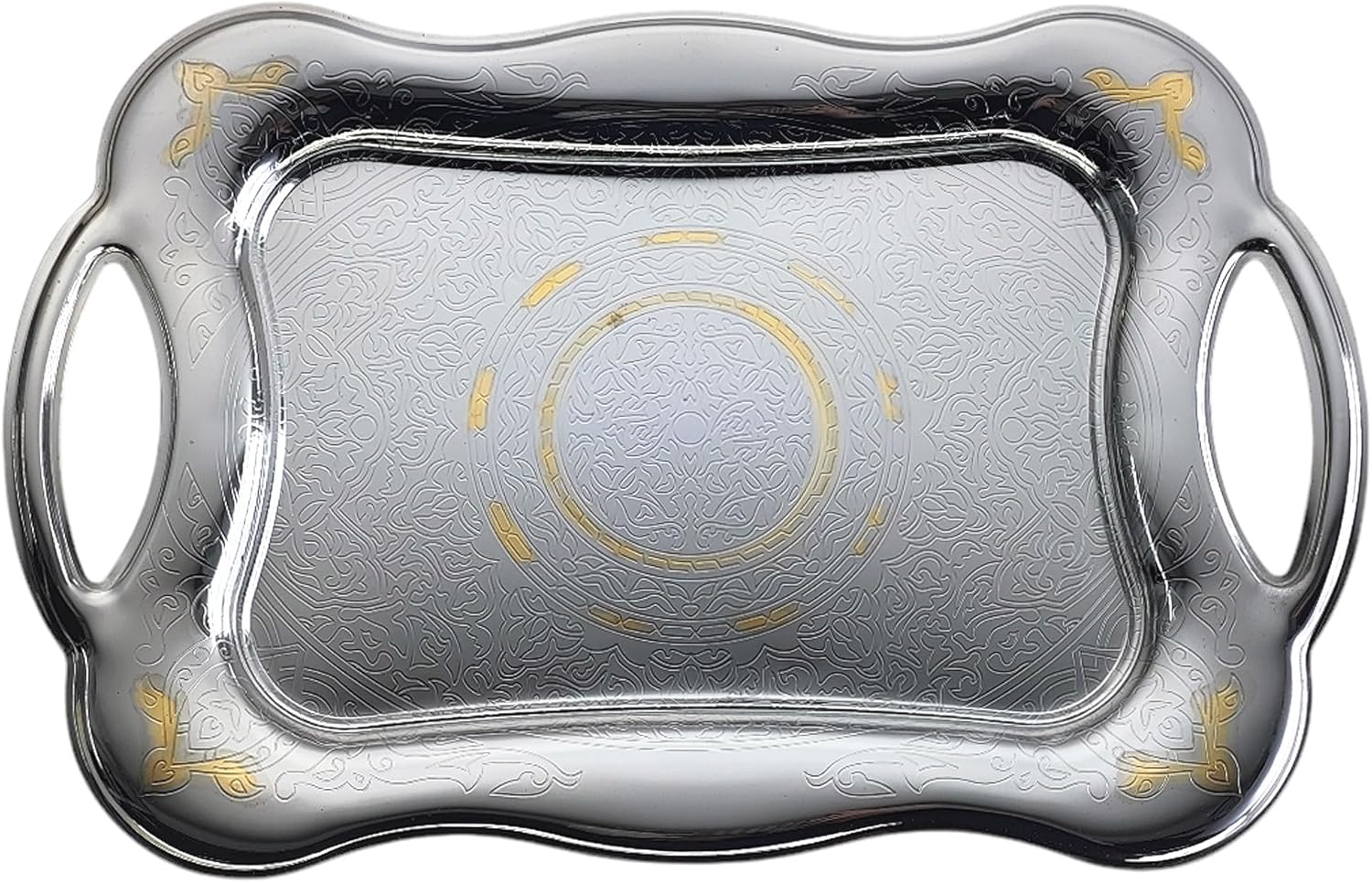 Pack of 3 elegant serving trays in in Different Styles, outside dimension: 38.5 cm x 26.5 cm (or 15.2 inch x 10.4 inch), inside dimension: 24 cm x 16.3 cm (or 9.4 Inch x 6.4 Inch).