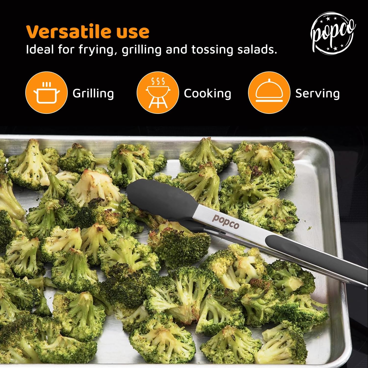 Versatile Sizes for Any Task: This 3-piece set includes 7, 9, and 12 inch tongs for prepping, cooking or plating; use as salad tongs or tongs for serving food from stove to table with control