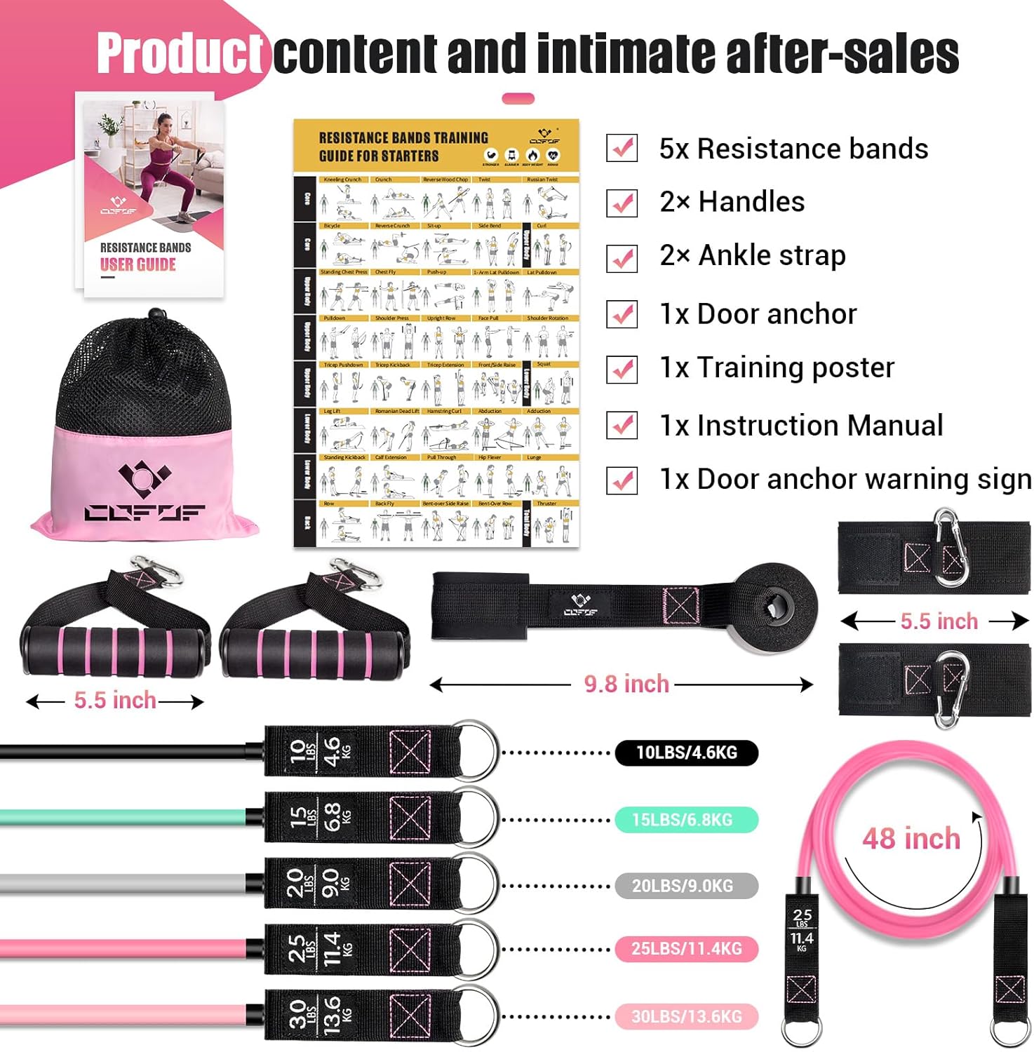 💞Upgraded Resistance Bands & After-sales Service: You will get resistance band*5, 2 handle, 2 ankle strap, 1 door anchor, 1 training poster, 1 instruction manual. To increase your workout intensity level, simply combine resistance bands with training posters to suit your workout needs. With resistance band exercises, you can get the perfect shape. If you encounter any problem while using the product, please contact us and we will help you to solve it within 12 hours.