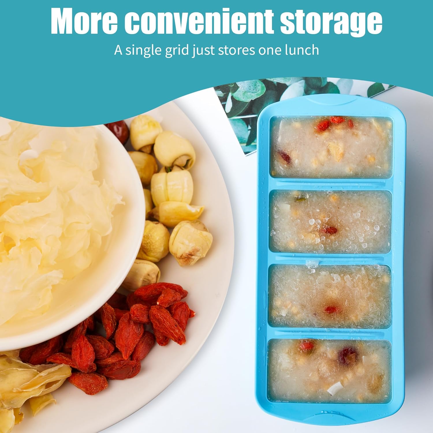 Convenient partial control: Each silicone food mold compartment with 1/2 cup(125ml) and 1 cup(250ml) filling lines in each compartment, allowing for freezing food into precise sizes. Our mold size is 11.41 inches long x 5.31 inches wide x 2.36 inches high, suitable for any size of microwave and oven.
