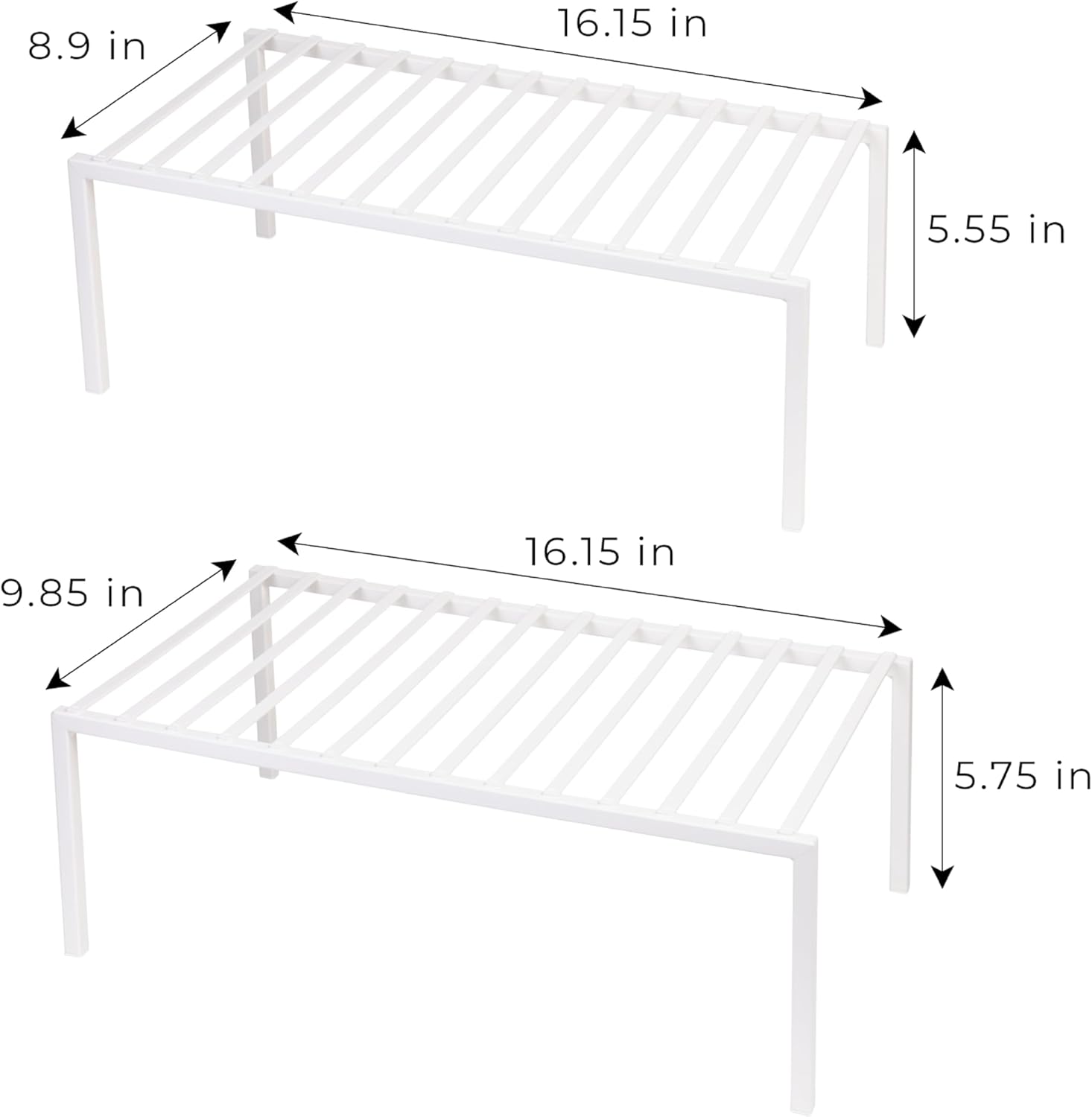 Expandable Premium Shelf Rack w/ plastic feet that protect cabinets, countertops, and other surfaces against scratches and nicks.