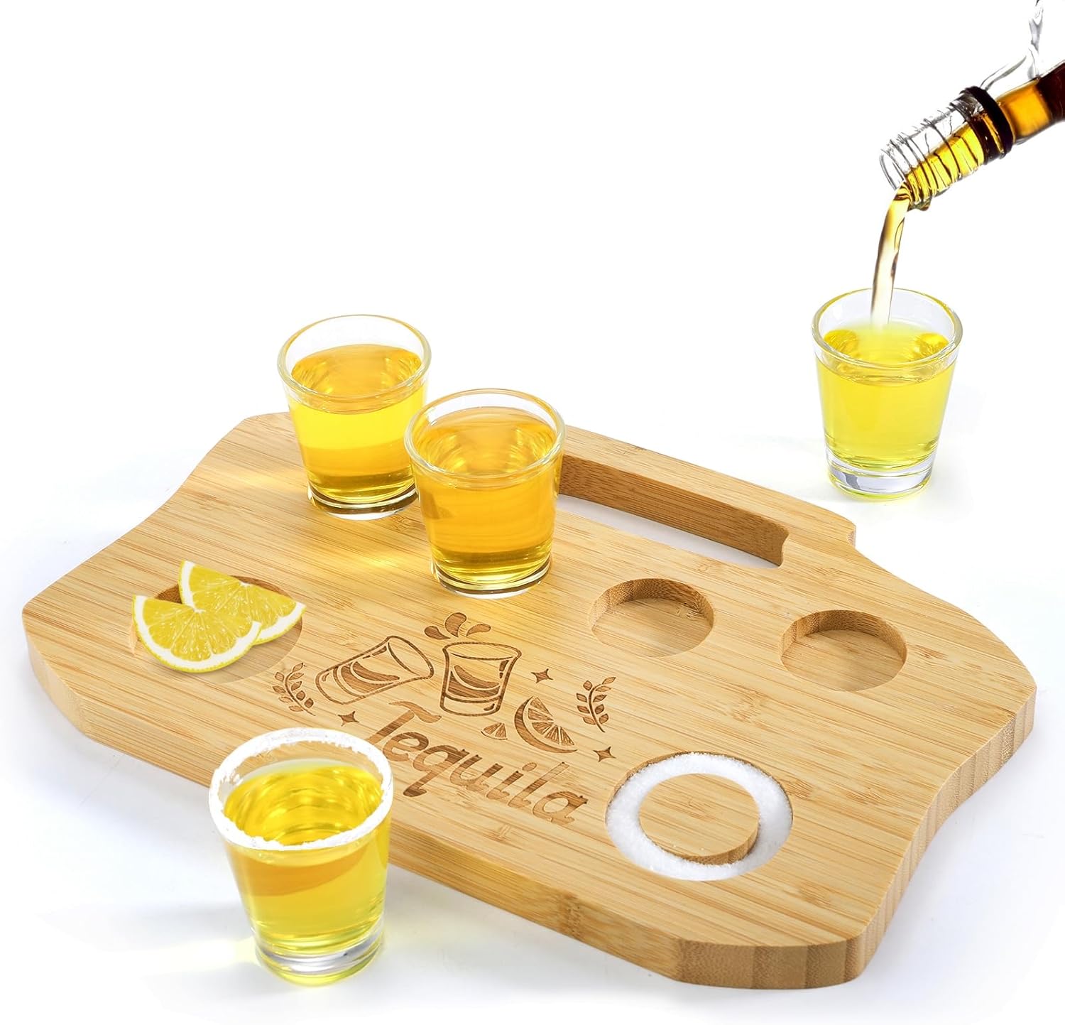 Tebery Tequila Shot Board with Handle for Liquor, Bar, Housewarming, Party