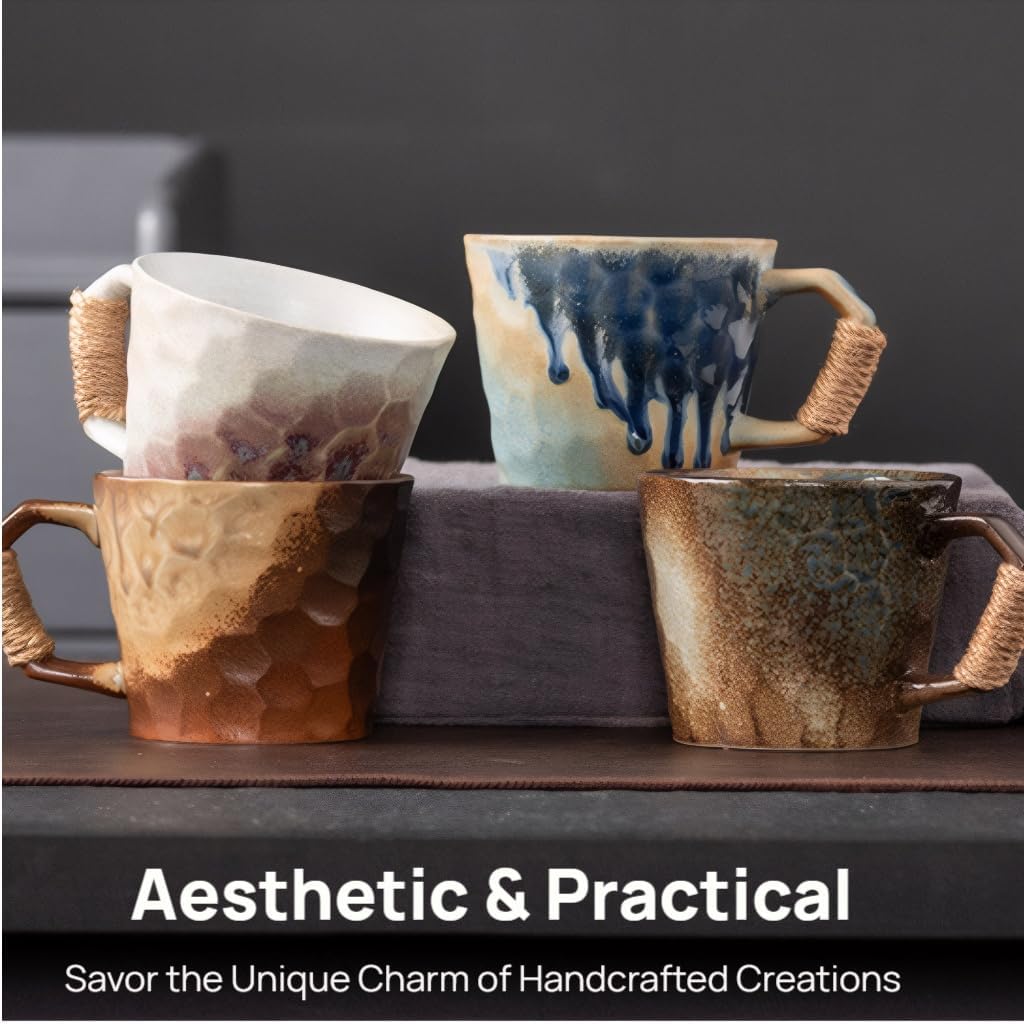 Handmade Vintage Japanese style Aesthetic ceramic coffee mug : Retro-inspired design with a rustic, earthy finish for a timeless look. Each pottery mug is handmade, ensuring no two pieces are identical. the decorative design makes these ceramic tea cups a stylish addition to any kitchen or office.
