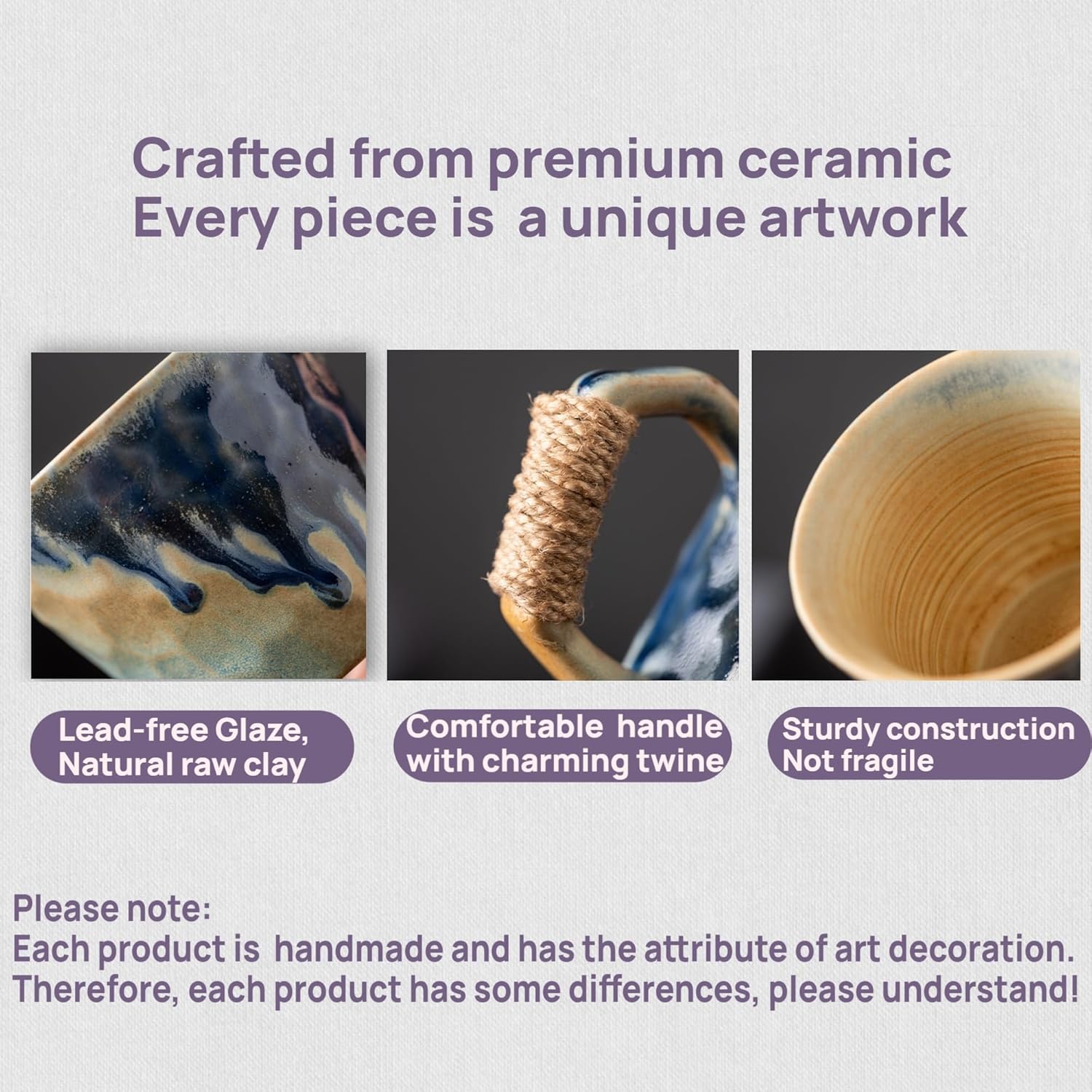 This handmade ceramic coffee mug offer s a vintage and rustic design for your daily beverages—perfect for morning coffee, afternoon tea, or evening drinks. Unique ceramic mug fits comfortably in your hands, making it a practical choice for home or office use. Ideal gift choice for housewarmings, Thanksgiving, Christmas, and parties, bringing colorful to your family and friends.