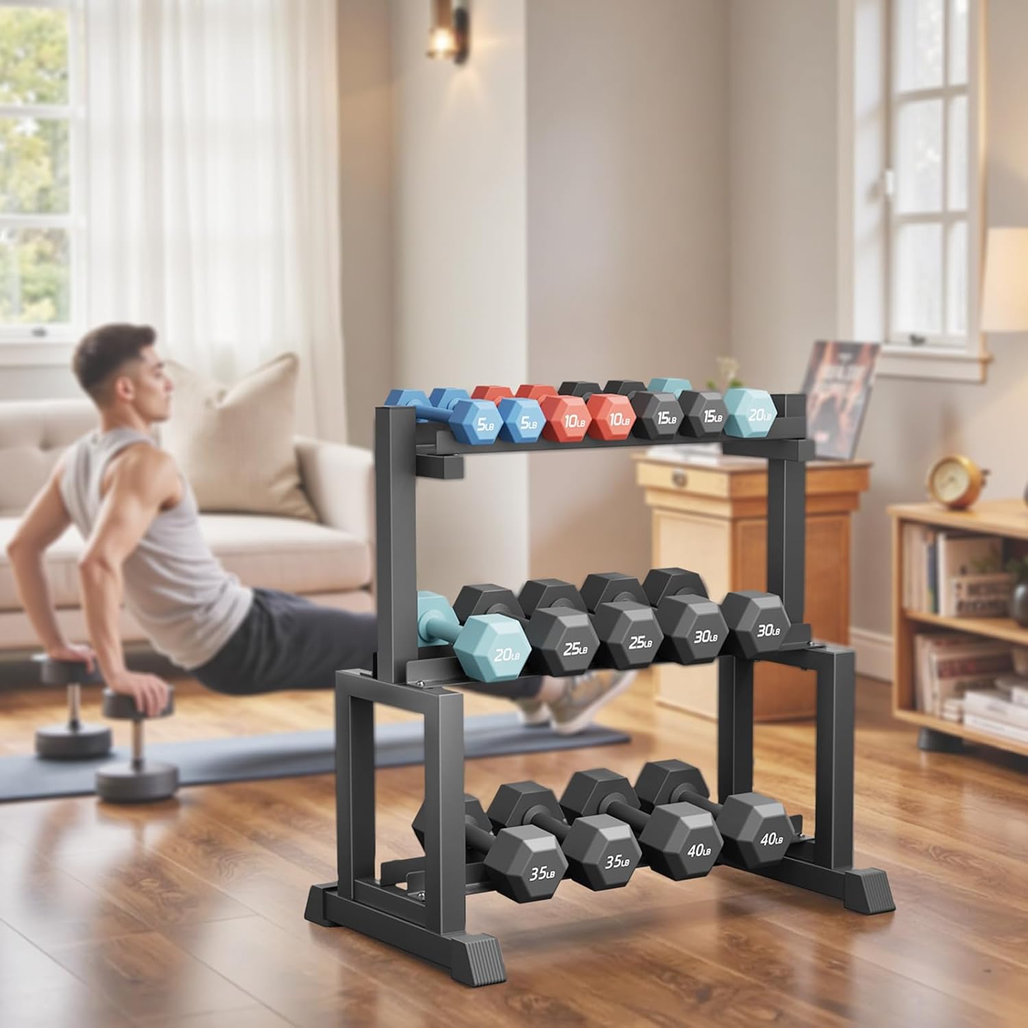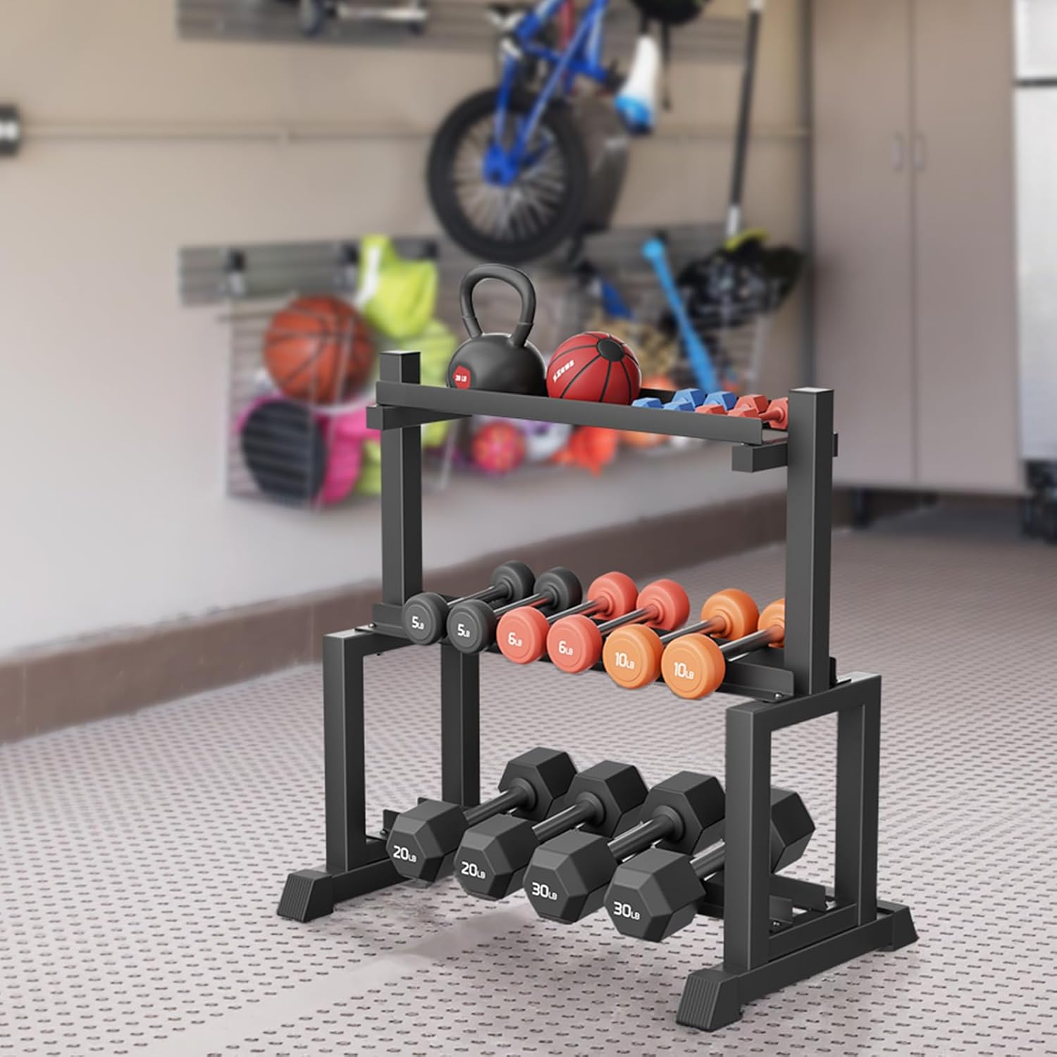Premium Powder-coated Finish: Every inch of this heavy duty dumbbell rack receives strong powder coating. Resists rust from sweaty palms, humidity, and accidental scrapes during intense sessions. Unlike cheap paint finishes that chip in months, our scratch-proof shield maintains like-new appearance for years. Wipe clean with a damp cloth; zero maintenance required!