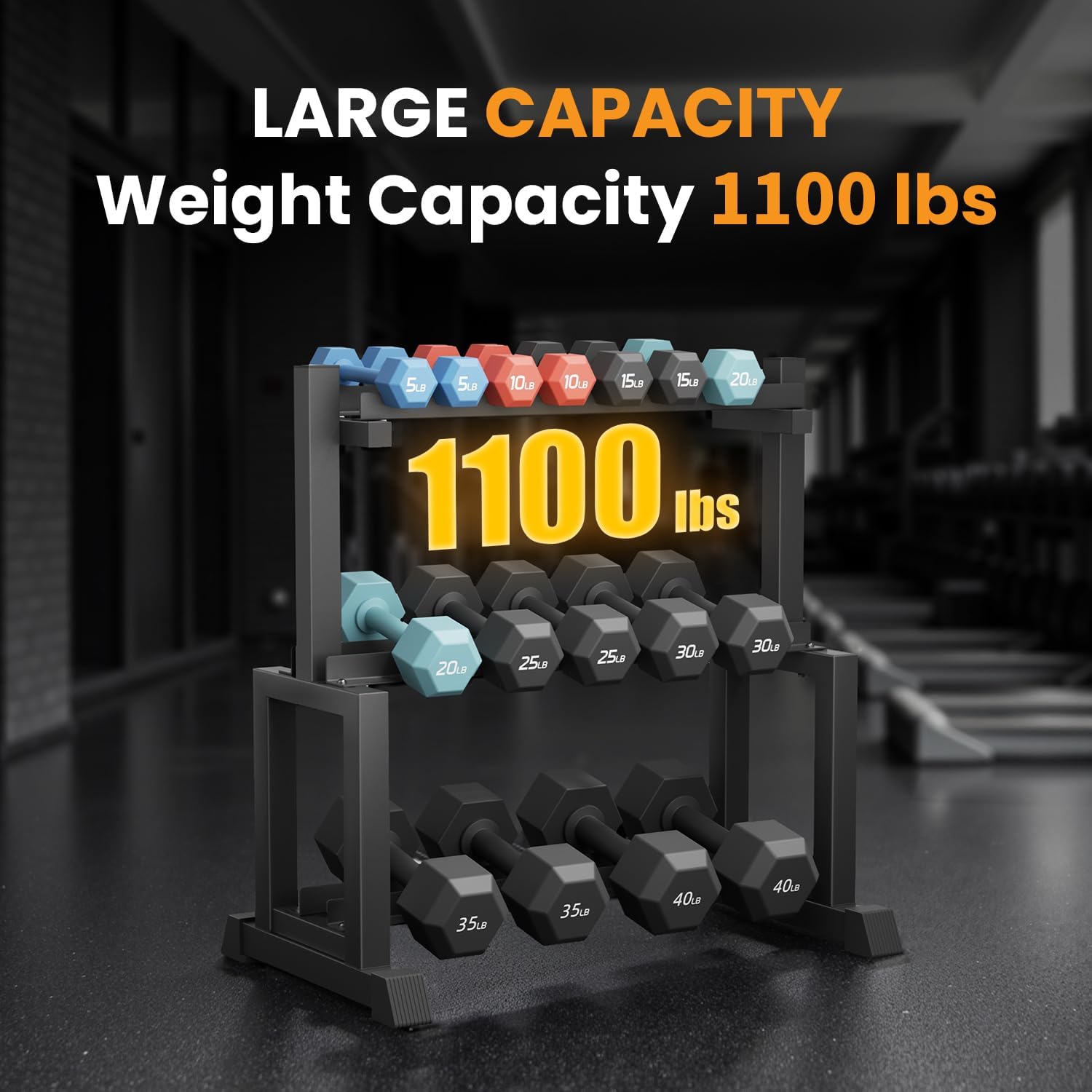 VOPEAK 1100LB Capacity Dumbbell Rack – 3-Tier Heavy Duty Weight Rack & Dumbbell Stand for Home Gym, Adjustable Storage Organizer for Dumbbells, Kettlebells, Space-Saving Weight Stand-(Rack Only)