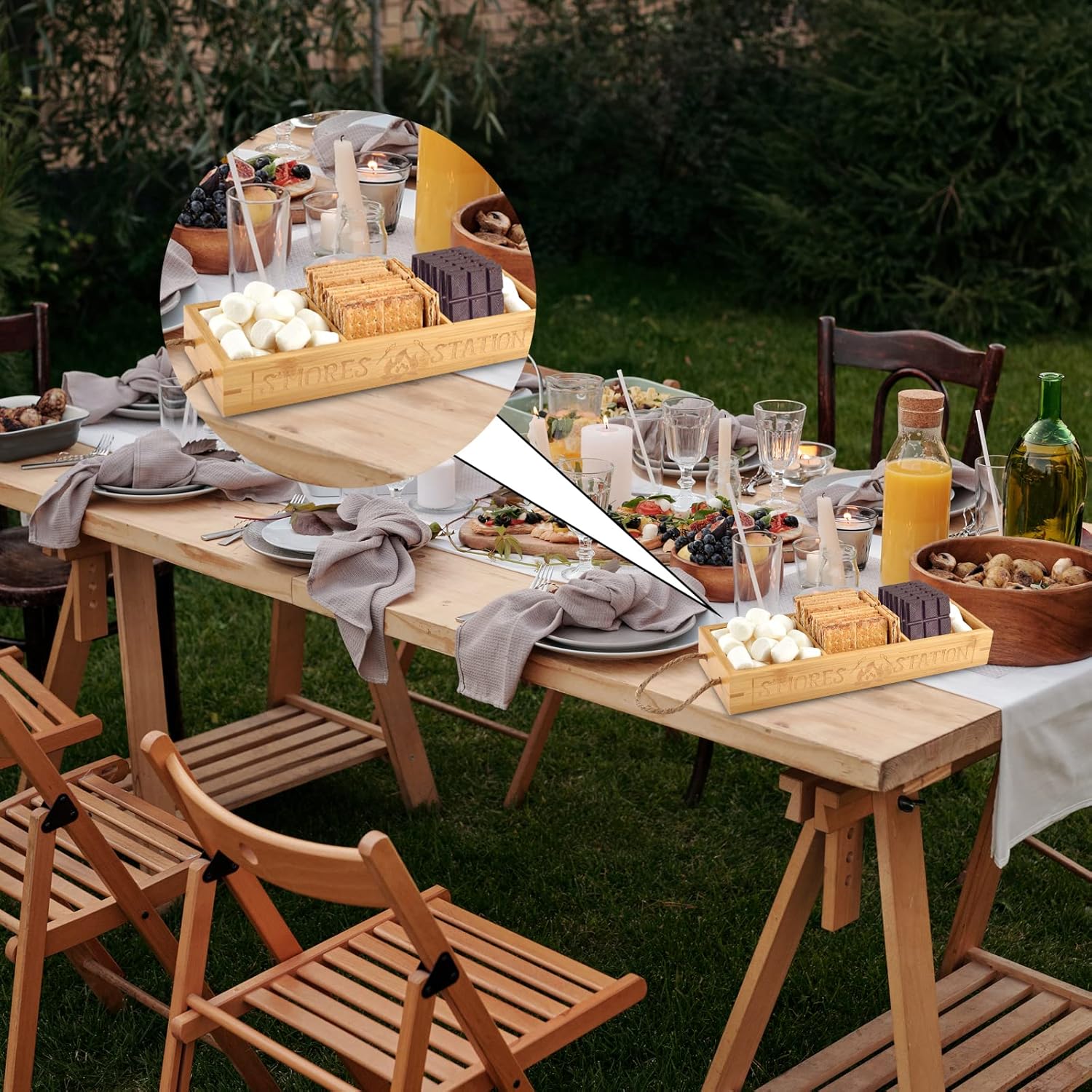 High Quality and Durable: S’mores bar stand is made of durable wood with rope handle, can be used for a long time, easy to carry, writes clearly and does not fade, carefully polished, burr-free, combined with text design, will be your good decoration.
