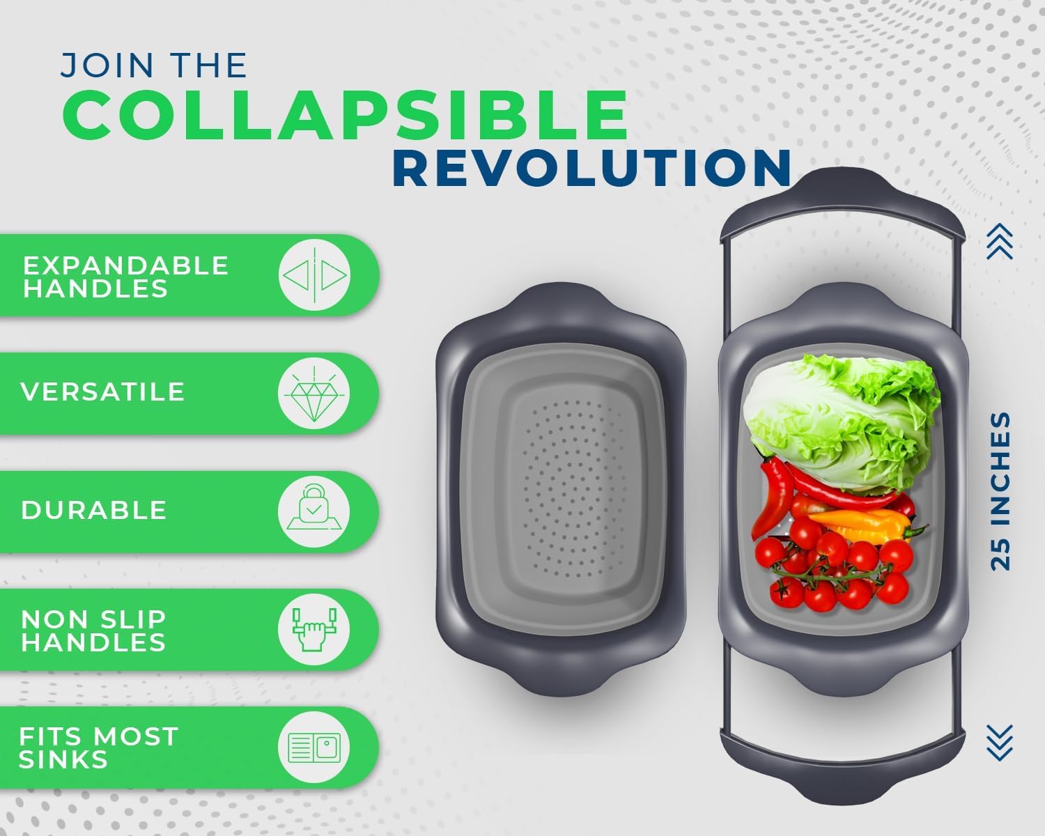 Adjustable Over the Sink Strainer: Designed with superior drainage in mind, this convenient collapsible colander is perfect for rinsing fruit and vegetables, draining pasta and noodles, or even canned foods. Item Measures: 4.4″ Height x 17.25″ Length x 10.25″ Width.
