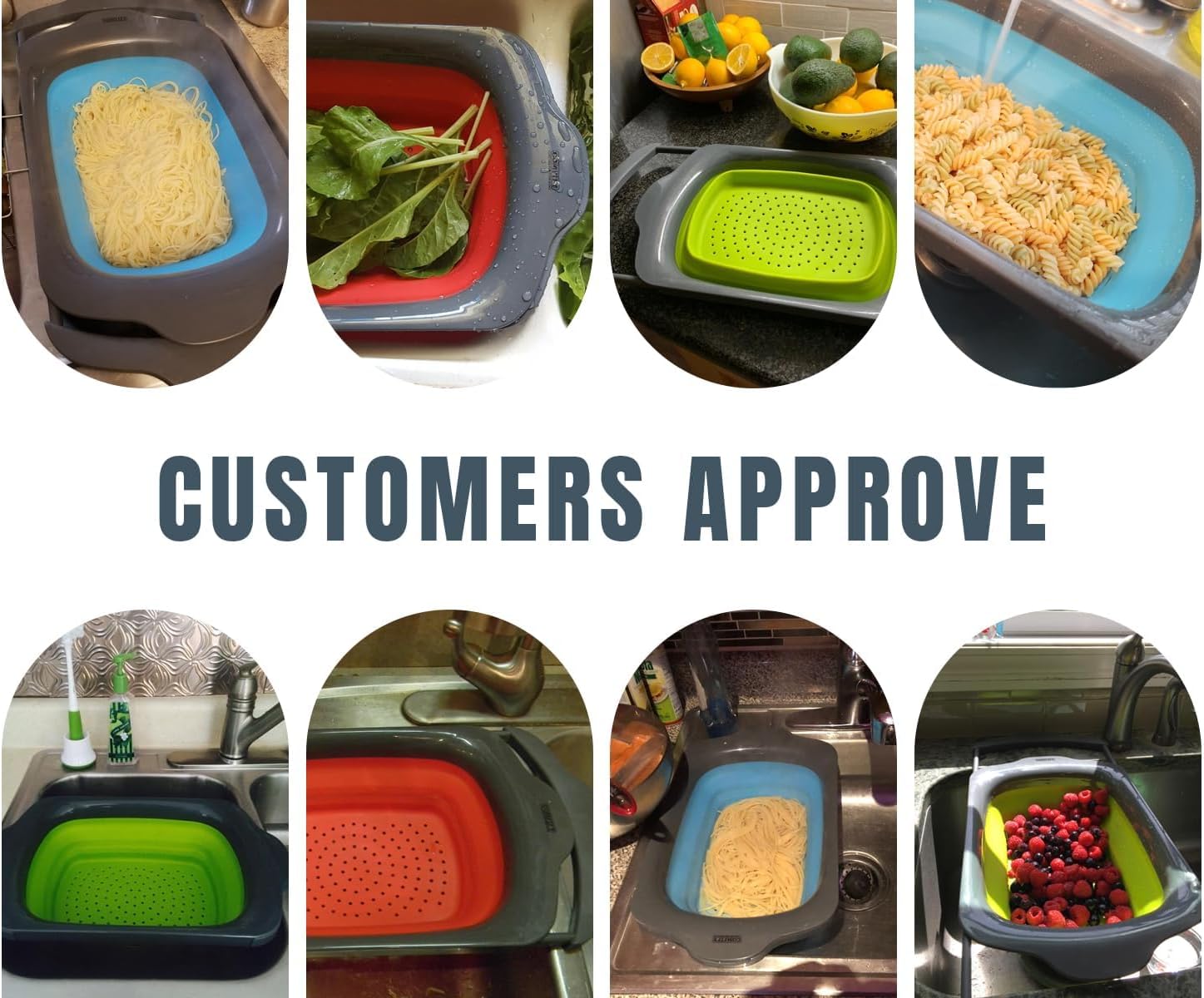 Perfect for Small Kitchens: Large, yet compact and foldable, this adjustable colander is ideal for small kitchens, RV’s and camping trips. Fits most sinks sizes and shapes, so make sure you get one for your friends too on that housewarming party.