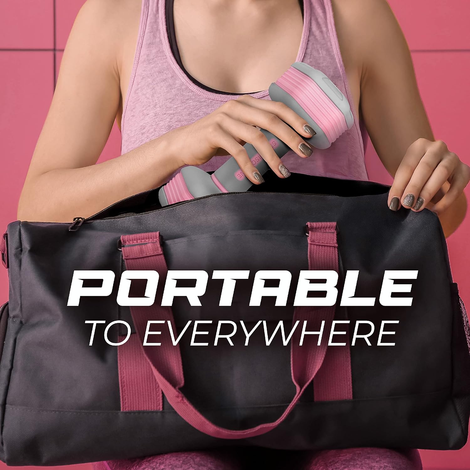 EXERCISE ANYWHERE AND EVERYWHERE: Compact and easy to carry around, Adjustable Dumbbell Set allows the ability to exercise anywhere in total comfort all while getting the natural hand weight feel; Its smart design saves space as well