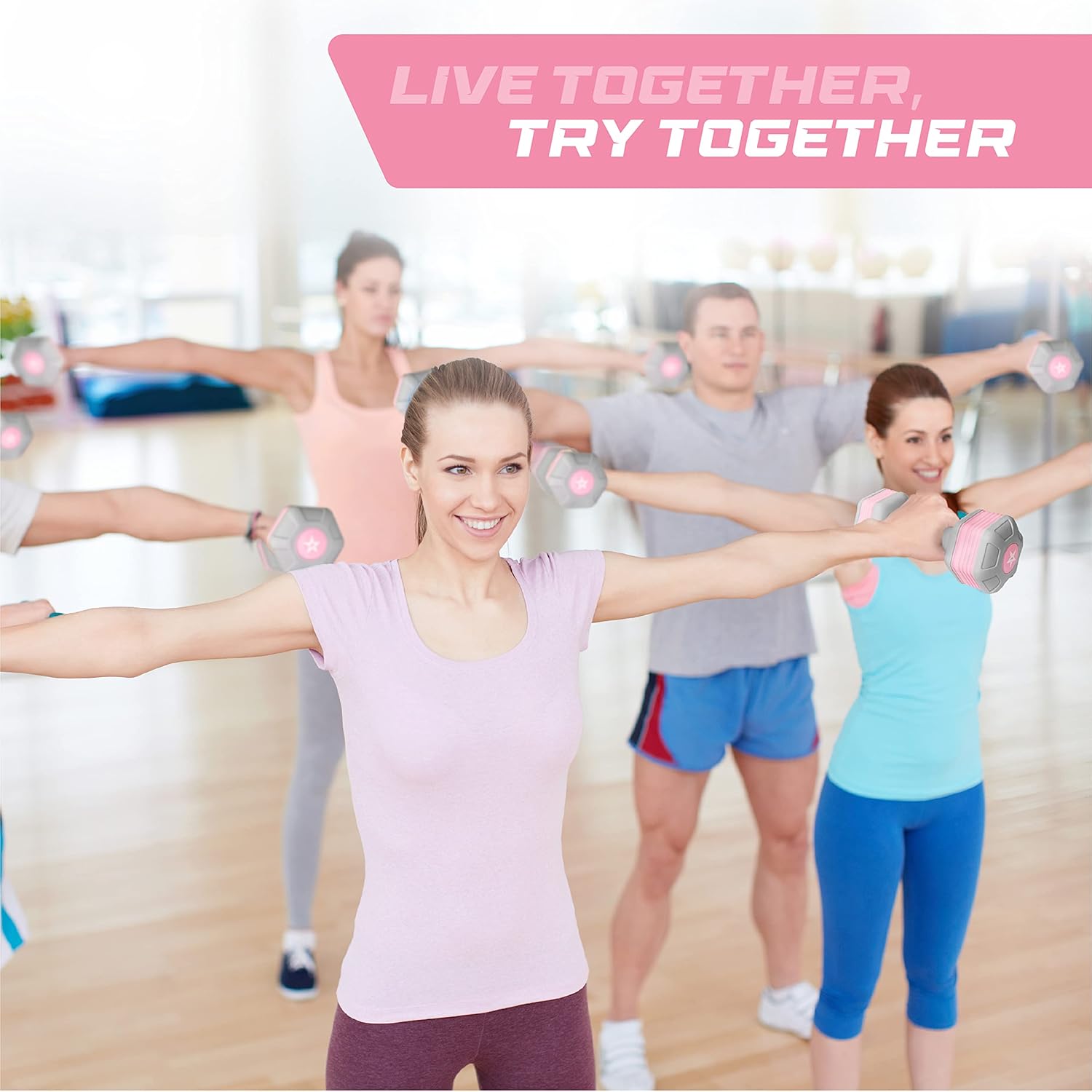 SPEEDY, EASY WEIGHT ADJUSTMENT: Change the weight of the Adjustable Dumbbell Set from 3,68 pounds up to 5 pounds in no time by adding six small blocks on each one handed weight; Great fits for any fitness level and exercise goals