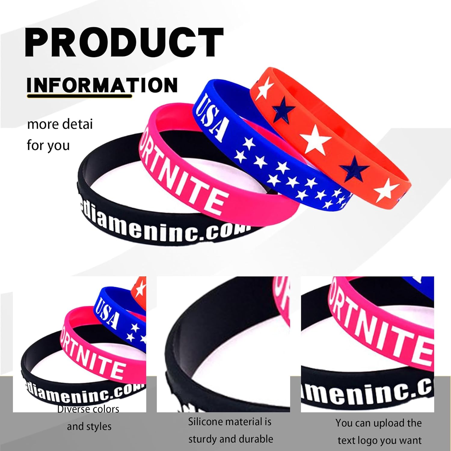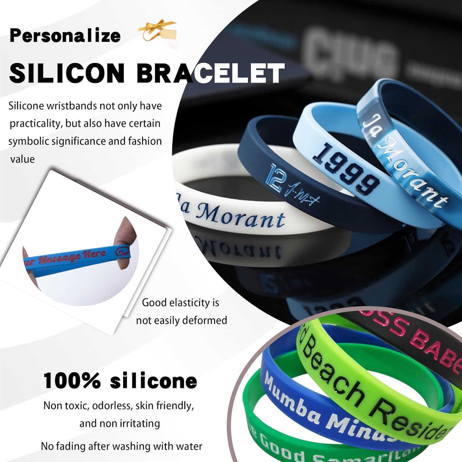 10-5000Pcs Custom Rubber Bracelets, Personalized Customizable Silicone Wristbands Clipart/Logo/Message, Rubber Bracelet Customized for Fundraisers, Awareness, Motivation Events