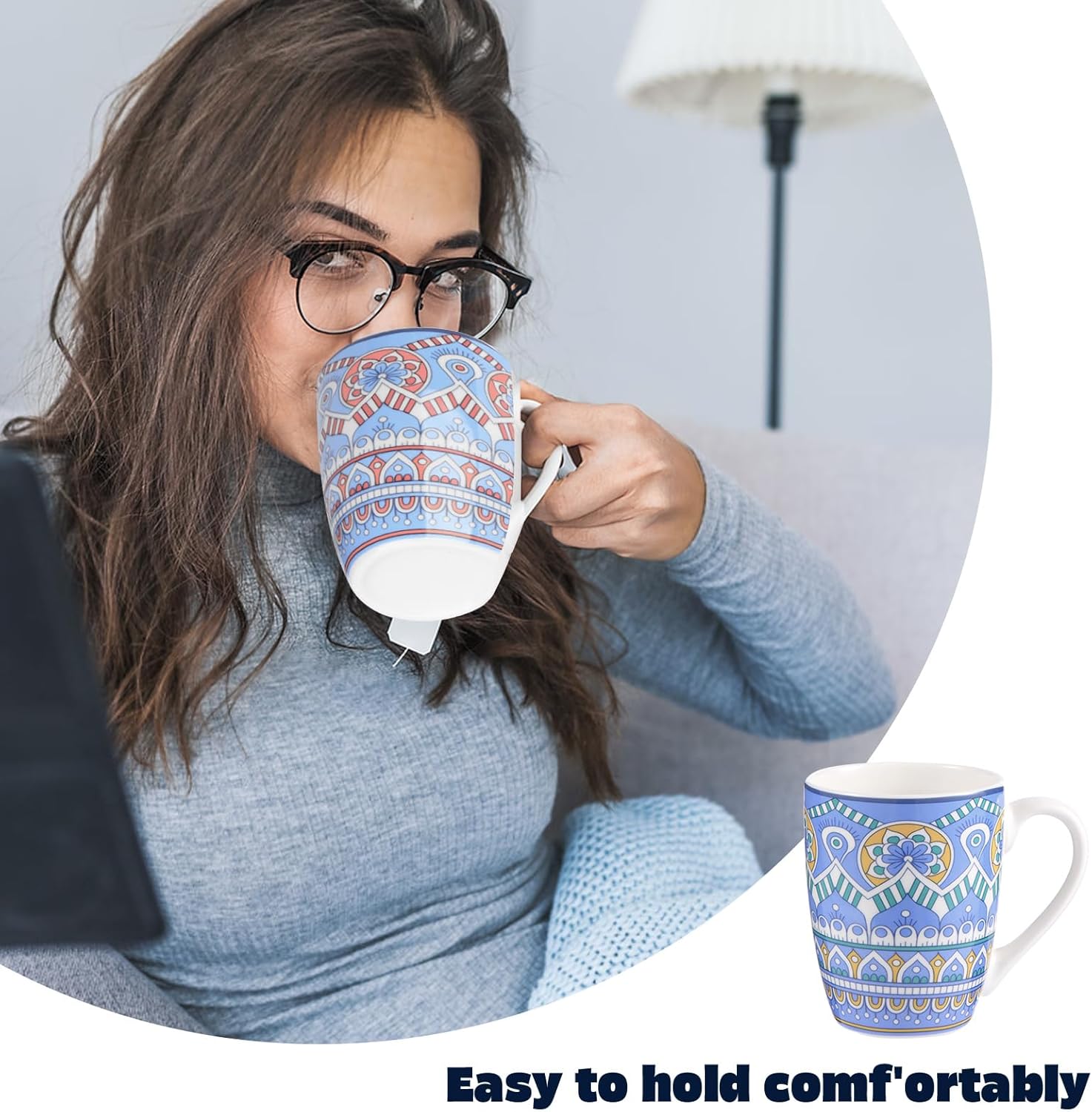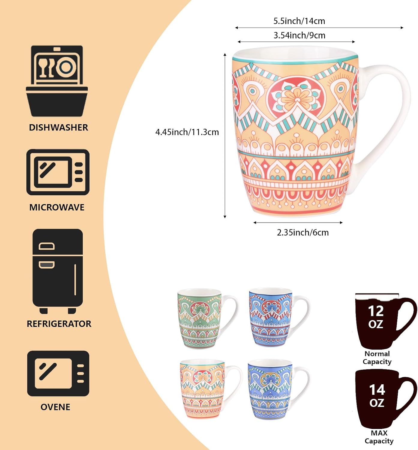 [Cold and Heat Resistant]: Ceramic coffee mug are made from premium natural clays and glazes and fired at 2200 degrees Fahrenheit for 6 hours. Because the raw materials are not polluted by heavy metals such as lead and cadmium, and the advanced underglaze color process, the health and safety of this set of cups have double insurance, you can use it with peace of mind without worrying about any health problems.