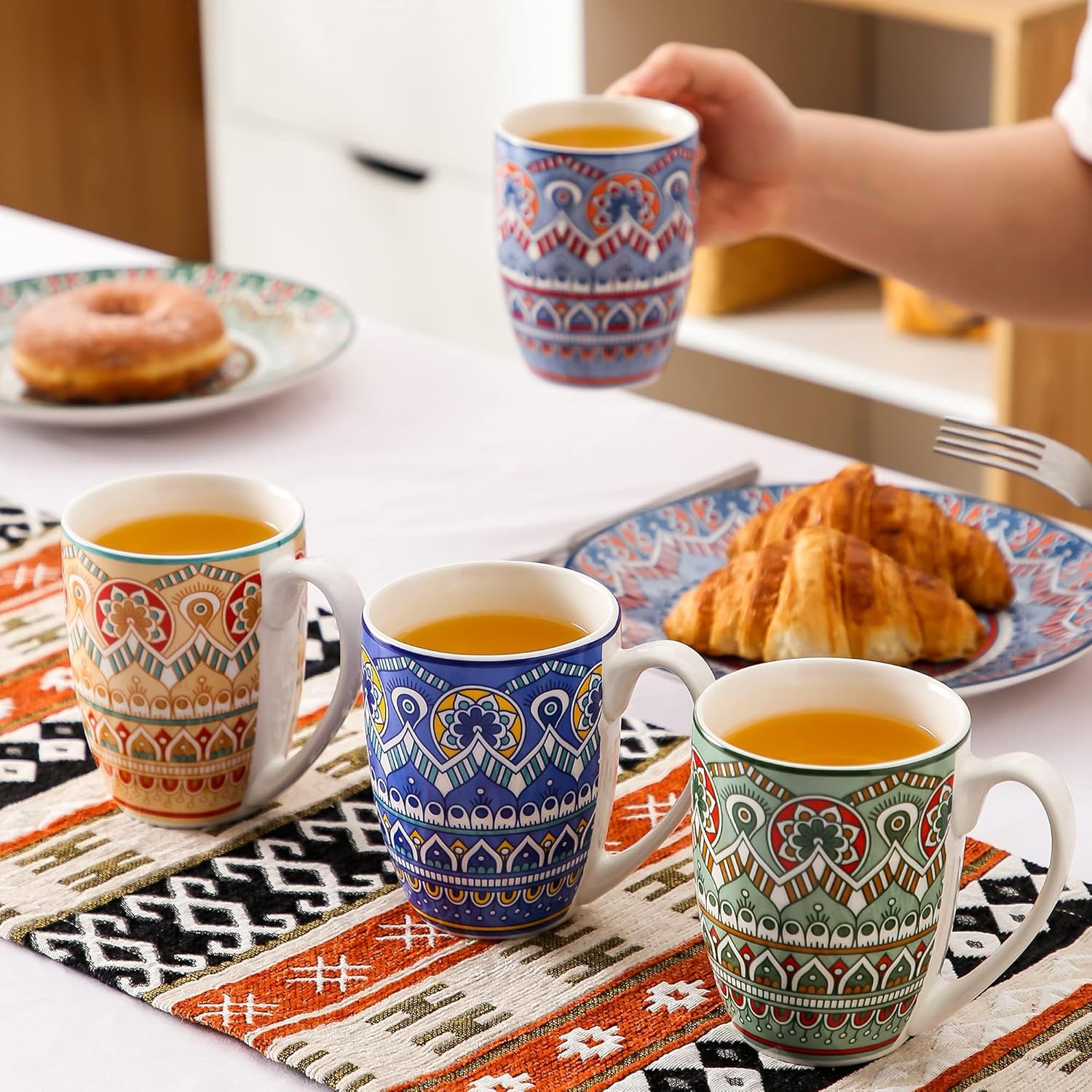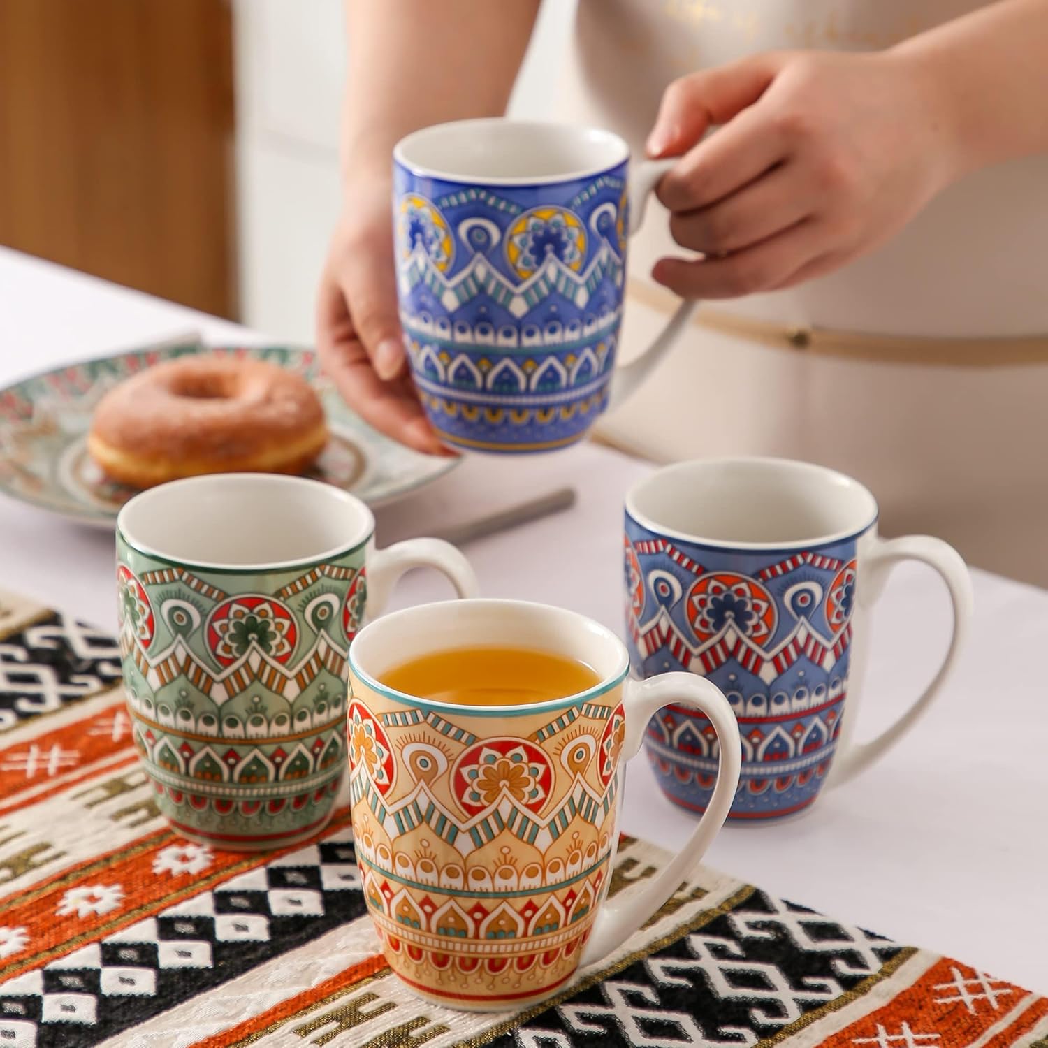 [Beauty From The Inside Out]: Underglaze color technology uses the color wrapped in the glaze to produce kiln changes at high temperatures, countless small points shine under the glaze, it is not an industrial product, but a work of fine art! It never fades, and even after a long time of use, these cups look just as bright and beautiful as the day you bought them. It is the companion of your pleasant life, the bright color of your wonderful life should have.