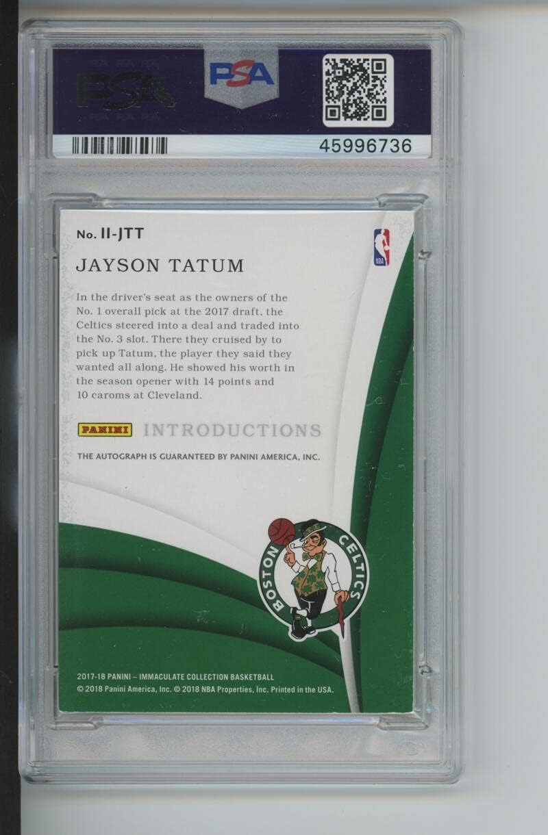 Thanks for shopping with LovelyCrads. 2017 Immaculate Introductions Jayson Tatum 72/75 ROOKIE RC AUTO Signed Autograph Autographed PSA 7 Graded Basketball Card NBA 2017-18. This listing is for a 2017 Immaculate Introductions Jayson Tatum 72/75 ROOKIE RC AUTO Signed Autograph AutographedBasketball Card graded by PSA as a PSA NM 7.This card comes from a certified autograph issue such that the hand signed autograph is guaranteed to be authentic. The manufacturer’s authenticity of the autograph is described on the card. This is confirmed by the PSA authenticating the card. The card is shown in the first scan. The back of the card is shown in the second scan. Super nicecard!