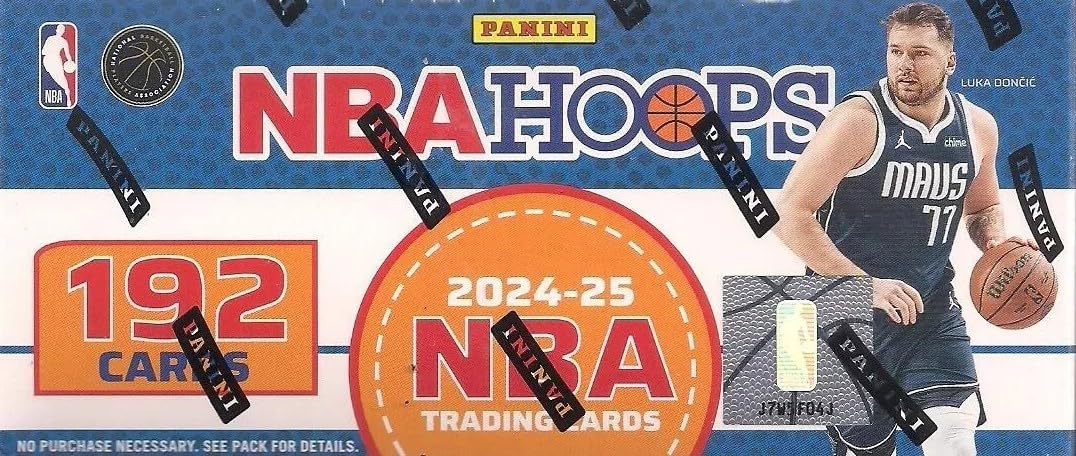 This is a 2024 / 2025 Panini HOOPS NBA Basketball Series Unopened Factory Sealed RETAIL Box That Contains 24 Packs with 8 Cards Per for a total of 192 card including Optic Chrome Premium Cards Plus a Chance For Rookie Cards, Autographs, Memorabilia Cards and retail EXCLUSIVE Explosions Inserts Plus! Each Retail Box contains a combination of 24 Insert Cards and Parallels, on average! Try for your favorite Stars and Hall of Famers including Shai Gilgeous-Alexander, Nikola Jokic, Lebron James, Stephen Curry, Giannis Antetokounmpo, Jayson Tatum, Luka Doncic, Anthony Edwards, Victor Wembanyama, Devin Booker, Kevin Durant, Ja Morant, Kyrie Irving, Lonzo Ball, Damian Lilliard, Chris Paul, Karl Anthony Towns, Kawhi Leonard, Jimmy Butler, Klay Thompson, Tyler Herro, Larry Bird, Julius Erving, Shaquille O’Neal, Anthony Edwards, Tim Duncan, Yao Ming and many others!! Possible Rookie Cards include Zaccharie Risacher, Alex Sarr, Bronny James (yes, Lebron’s son), Zach Edey, Reed Sheppard, Stephon Castle, Dalton Knecht, Ron Holland, Jared McCain, Donovan Clingan, Matas Buzelis, Kel’el Ware, Tristan da Silva, DaRon Holmes II, Kyle Filipowski and many more top picks from the 2024 NBA draft class! 2024-25 Hoops Basketball kicks off the new NBA season with your chance to collect the first rookie cards of the 2024 NBA Draft in their NBA jerseys! Search for Retail-Exclusive autographs in Hot Signatures Rookies Green, Rookies Ink Green, Great SIGnificance and look for the Counter Display-Exclusive parallel Great SIGnificance Gold (#’d/10)! Counter Display Boxes are the only place to find exclusive Green Explosion (#’d/99), Blue Explosion (#’d/59) and Red Explosion (#’d/15) Base parallels! Also look for the new Base Premium, Base Rookies Premium and Base Hoops Tribute Premium in Counter Display-Exclusive parallels such as Prizms Blue Wave (#’d/99) and Prizms Green Wave (#’d/25)! Find a full roster of Retail-Exclusive inserts, including Pure Players, Skyview, Arriving Now, Rookie Greetings and the returning Frequent Flyers insert! Each insert features a Holographic parallel!