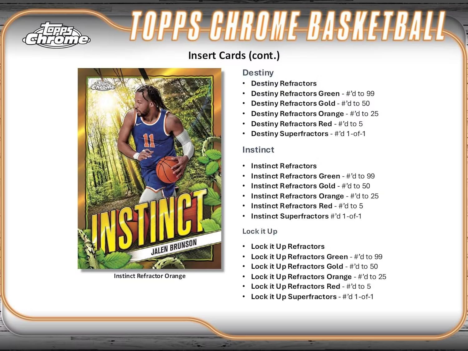 Find tons of Inserts in Topps Chrome Basketball, Look for Iconic inserts and Brand New Inserts in 2025 Topps Chrome. Find New Inserts like: Test Drive, Instinct and Lock it Up. Also look out for SSP Case Hits: 451, Rock Stars, LETS GO!, Ultra Violet All-Stars, Radiating Rookies and Helix!