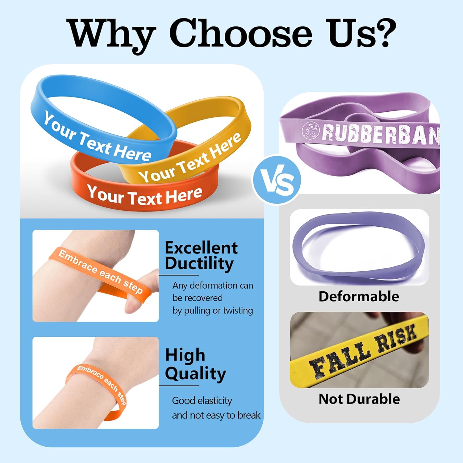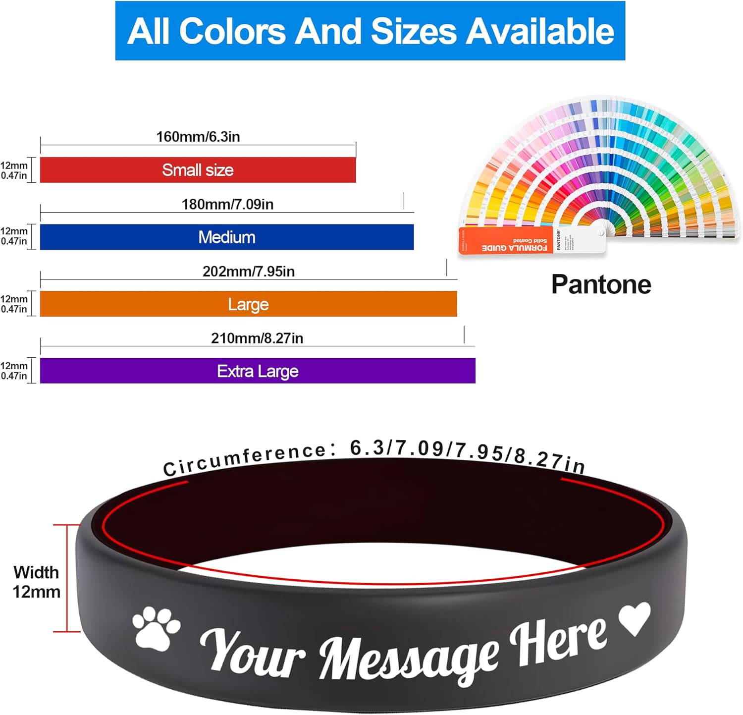 Meaningful & Impactful: Support mental health awareness, autism advocacy, cancer campaigns, or personal milestones. Personalize your silicone wristbands with names, phone numbers, emergency details, blessings, motivational quotes, company logos, or uplifting messages. These wristbands are a heartfelt way to spread warmth, positivity, and connection