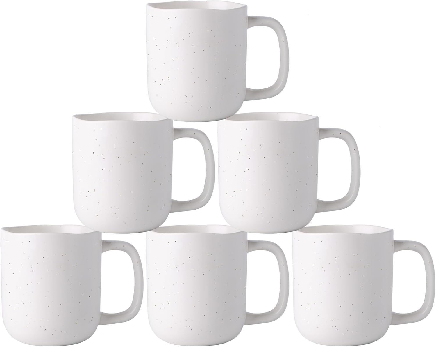 AmorArc 14oz Coffee Mugs Set of 6, Speckled Ceramic Coffee Mugs with Large Handle & Wavy Rim for Latte/Hot Cocoa/Tea, Coffee Cups for Men Women. Oven, Dishwasher&Microwave Safe, Speckled White