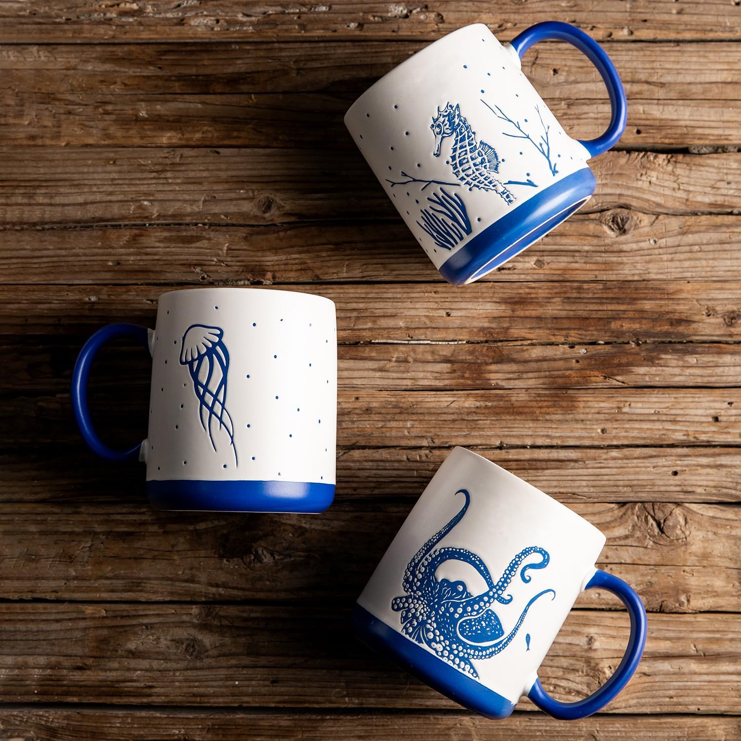 HANDMADE & STYLISH DESIGN: Designed By Professional Artists and Made by hand, these stylish mugs with a group of animal Patterns look fantastic on the table and brighten up your kitchen,Their large handle provide you the most comfortable grip, Smooth rim make you drinking comfortably, And the stable base is safe for daily using.