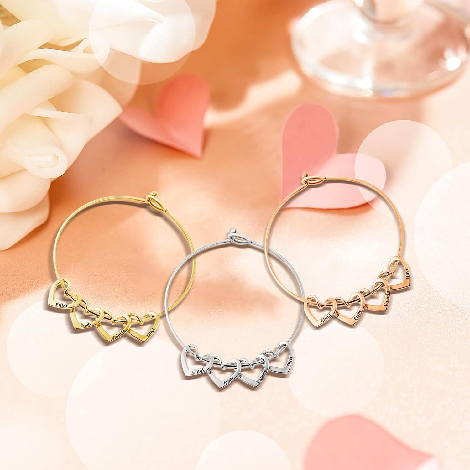 BAUMA AUTO Personalized Bracelets for Women with 2-8 Custom Names Heart Charms Promise Bangle Cuff Bracelets for Women Unique Jewelry for Wife Grandma Mother’s Birthday Anniversary Christmas Gift