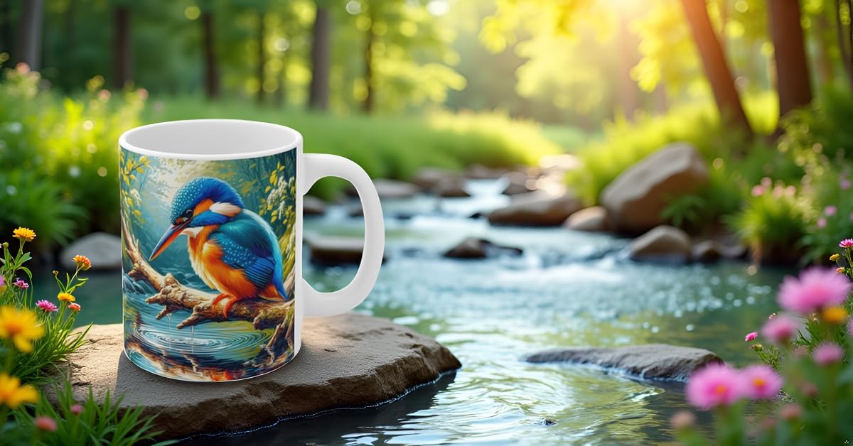What’s better than a peaceful, cozy morning coffee that gets you ready for the day? This beautiful and colorful Kingfisher mug will do just that!